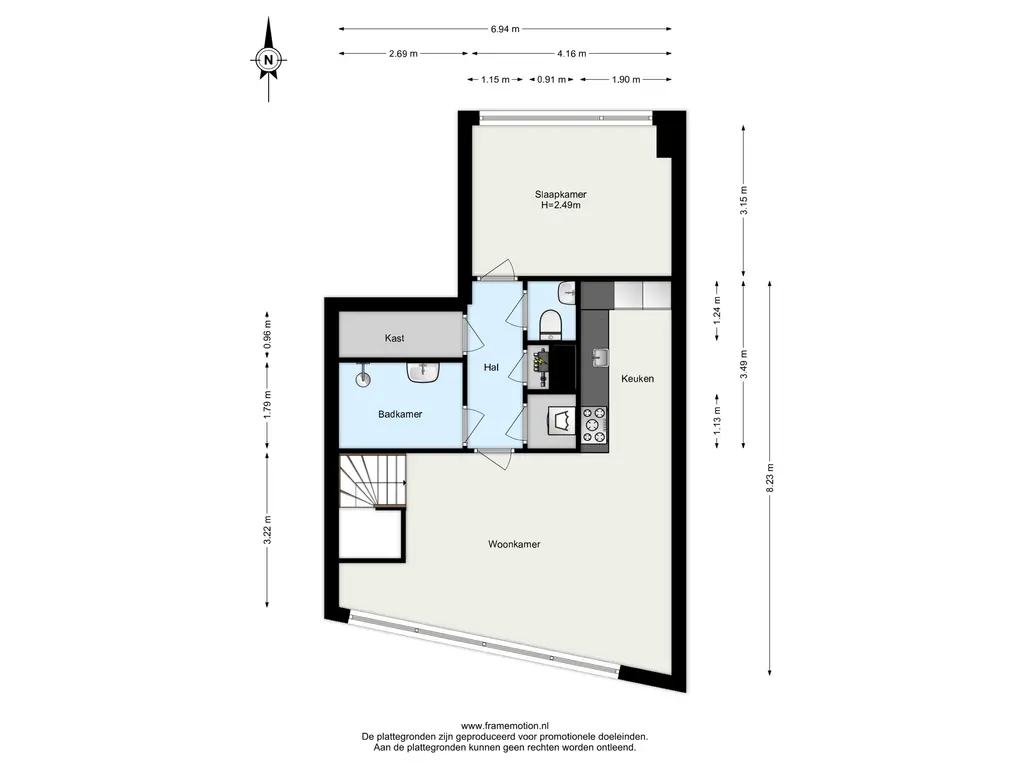 Via de trap bereik je de woonverdieping en stap je direct de lichte woonkamer binnen. De grote raampartijen over de gehele breedte van het appartement zorgen voor veel lichtinval en een ruimtelijk gevoel. De ramen zijn voorzien van horren, wat zorgt voor extra comfort tijdens warme dagen. De woonkamer biedt voldoende ruimte voor zowel een zithoek als een eethoek en biedt tevens mogelijkheden voor het creëren van een werkplek.