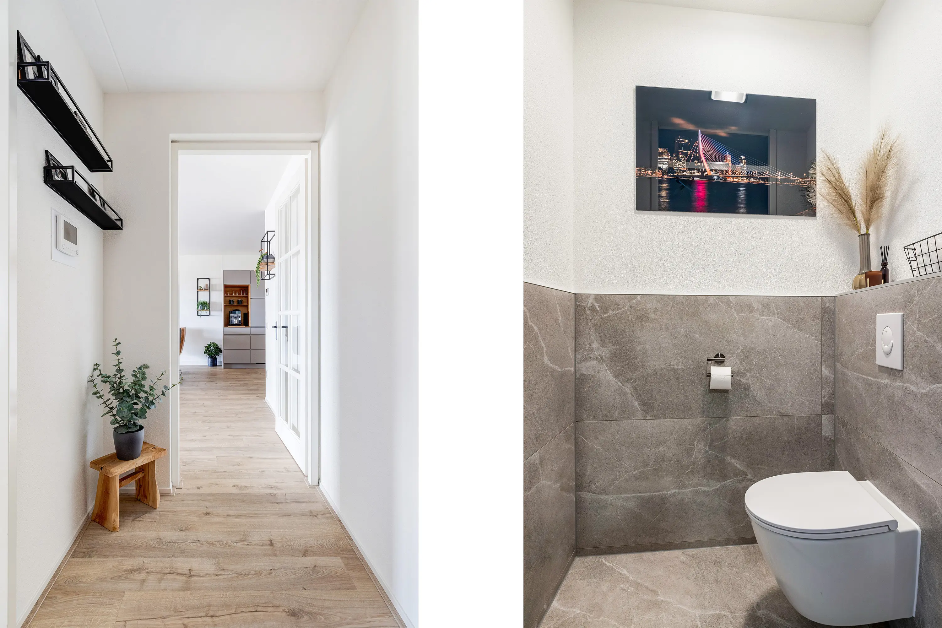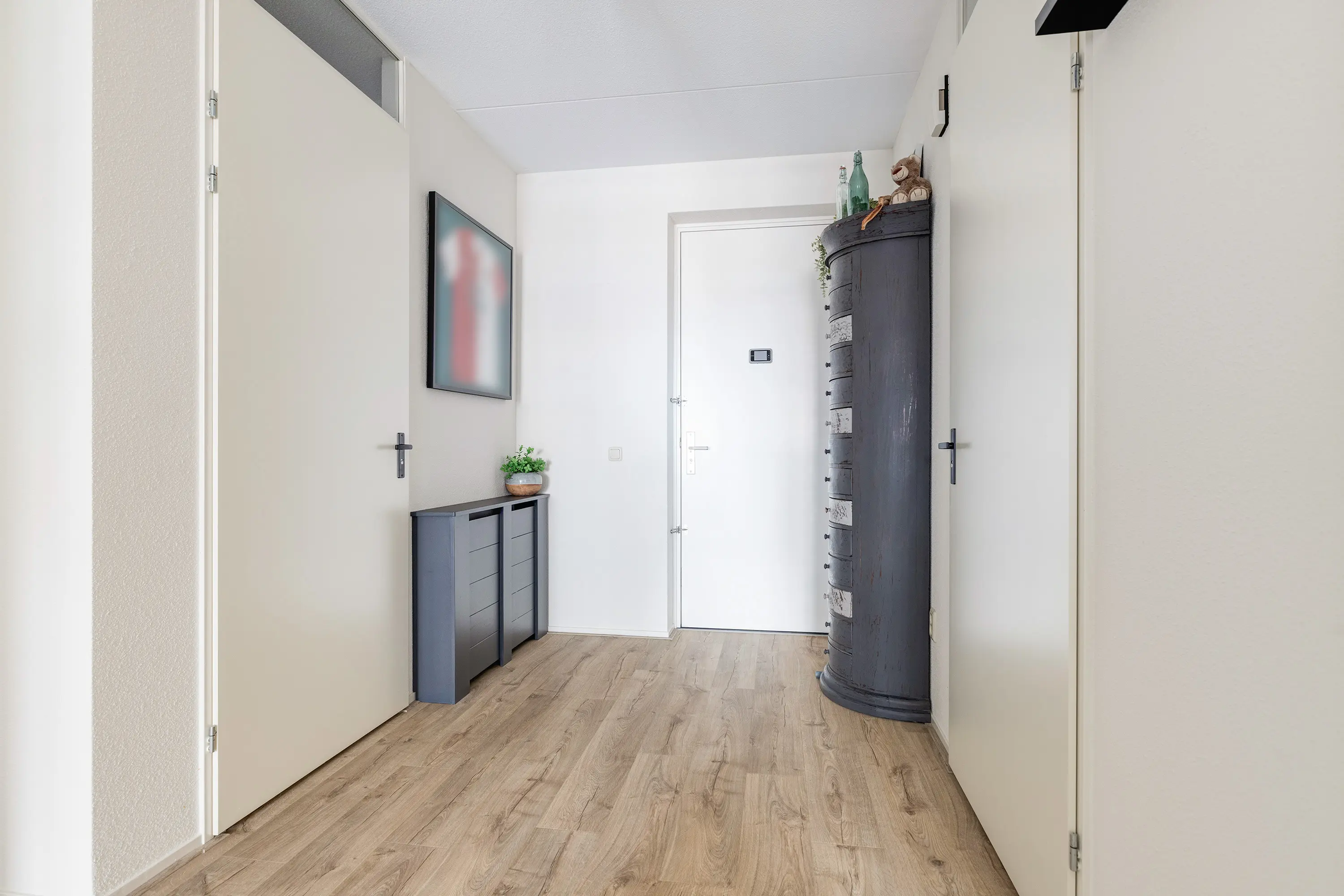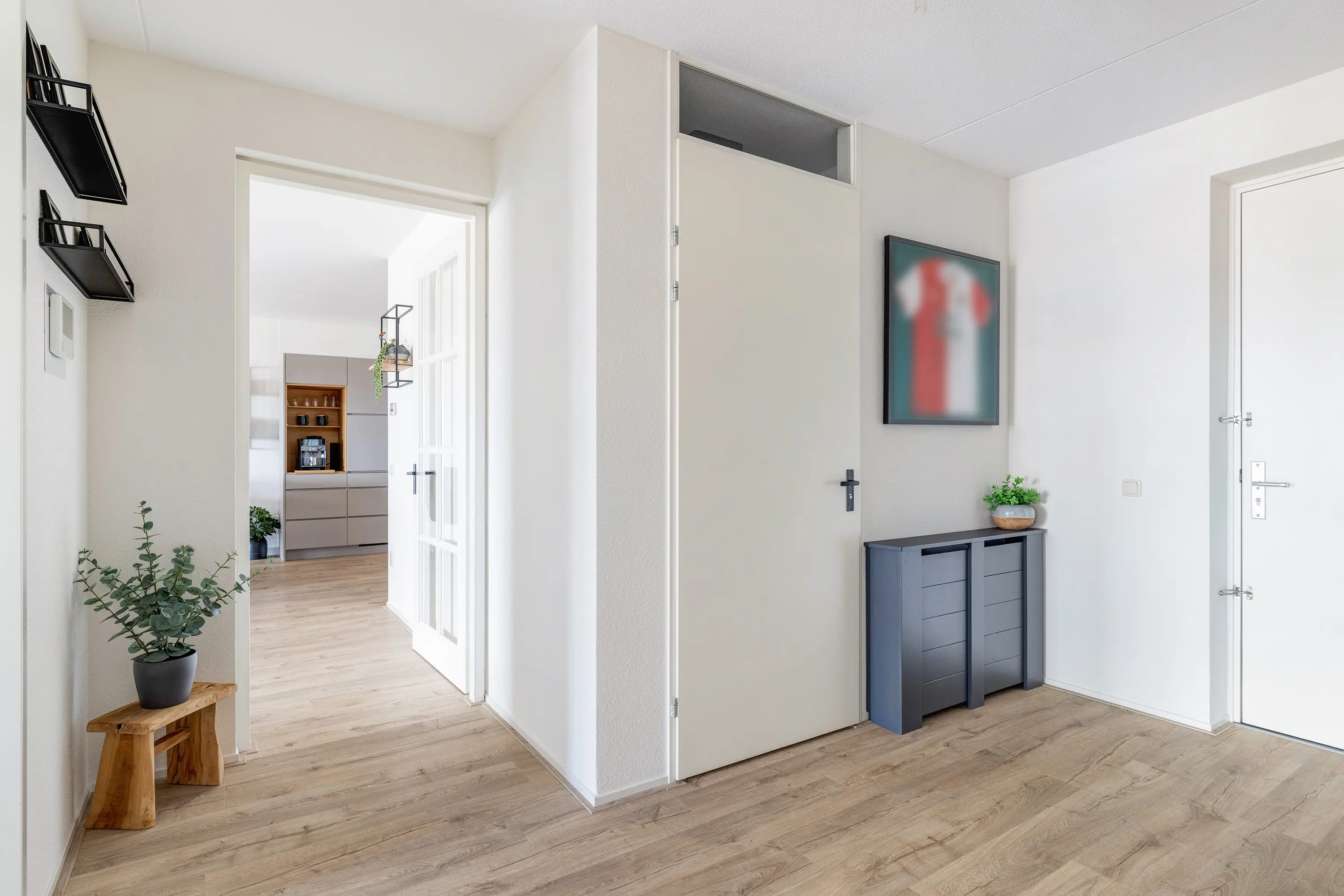 Via de voordeur komt u in de hal, die toegang biedt tot alle vertrekken van het appartement. Het gehele appartement is voorzien van een fraaie laminaatvloer, wat zorgt voor een warme en moderne uitstraling.