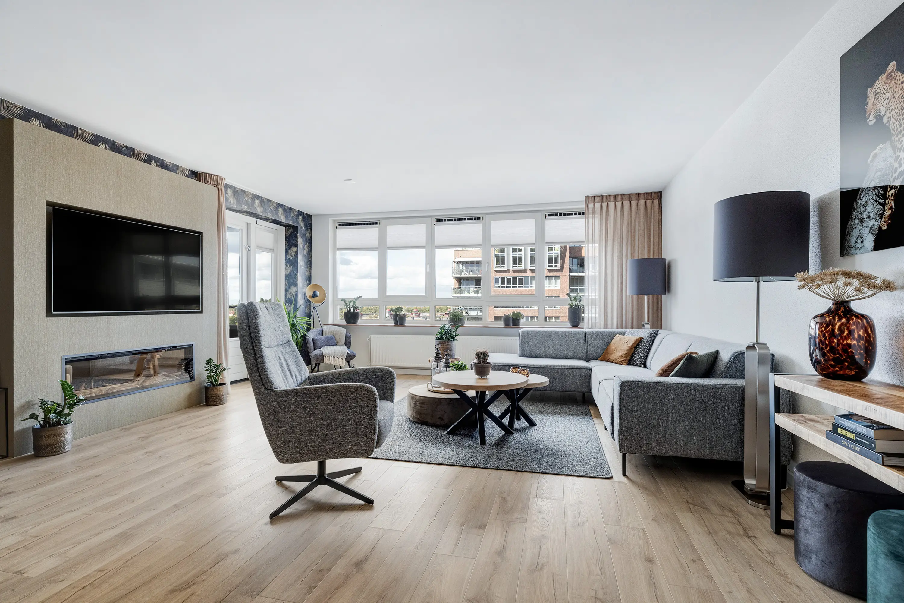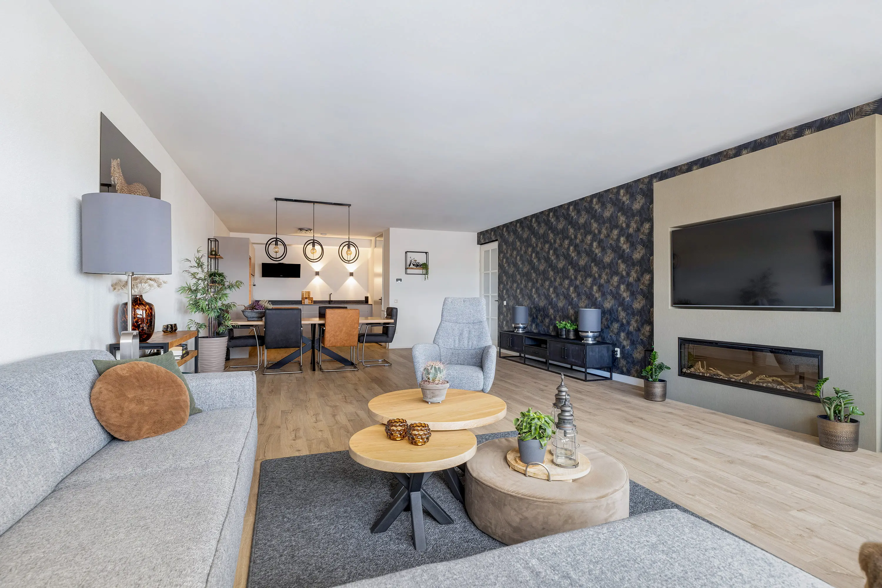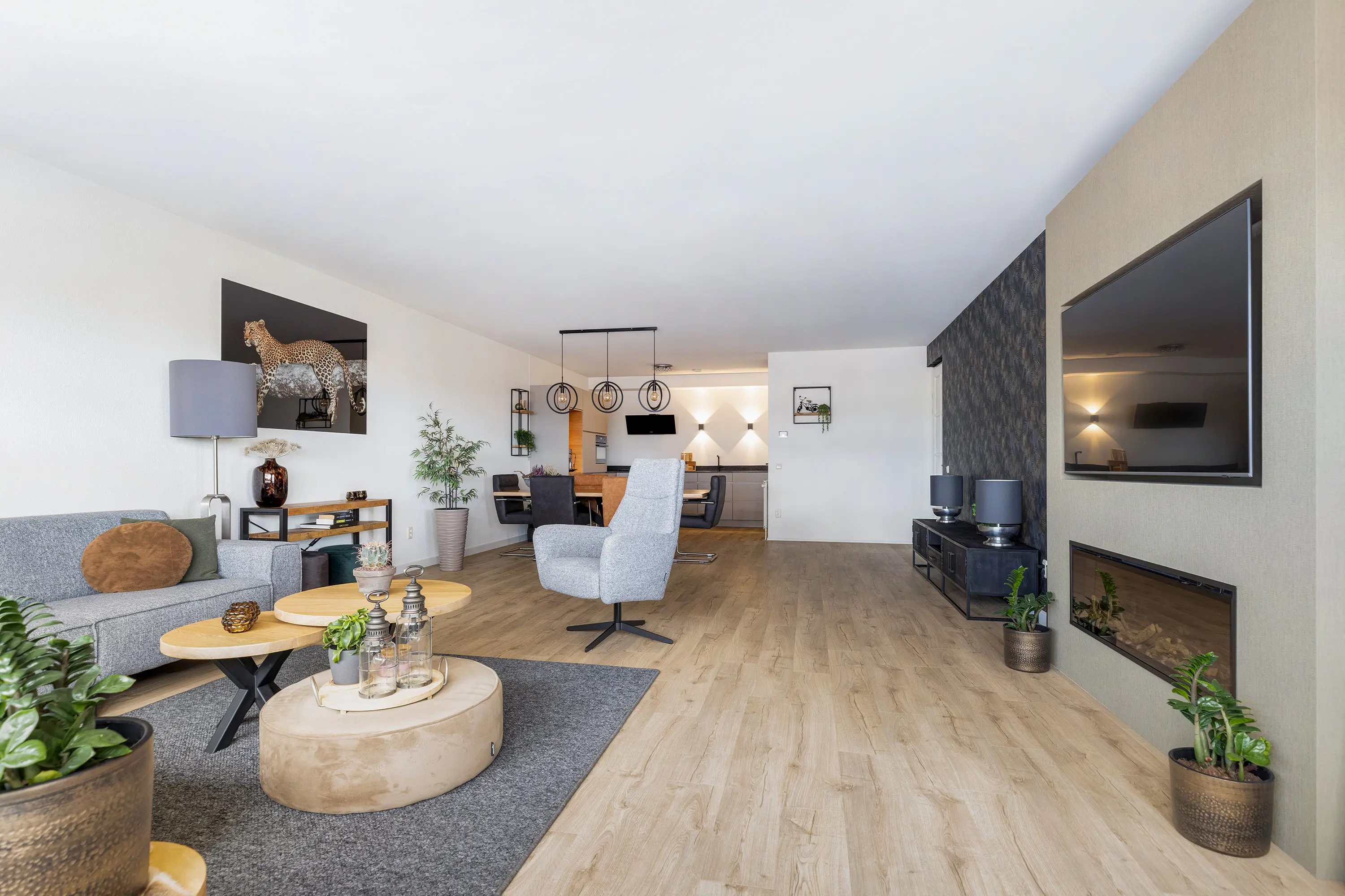 - Royale woonkamer met cinewall en elektrische haard