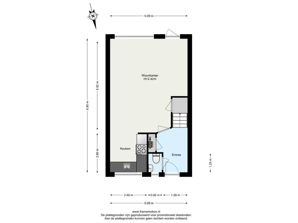 Entree in de hal met meterkast en trapopgang naar de eerste verdieping. De toiletruimte is gedeeltelijk licht betegeld en voorzien van een duoblok toilet. Vanuit de hal betreedt u de tuingerichte woonkamer. Dankzij de grote ramen aan de achterzijde en de loopdeur naar de tuin is er een prettige lichtinval en een directe verbinding met buiten. De woonkamer is afgewerkt met een eikenhouten vloer, glad gestucte wanden en beschikt over een praktische trapkast.