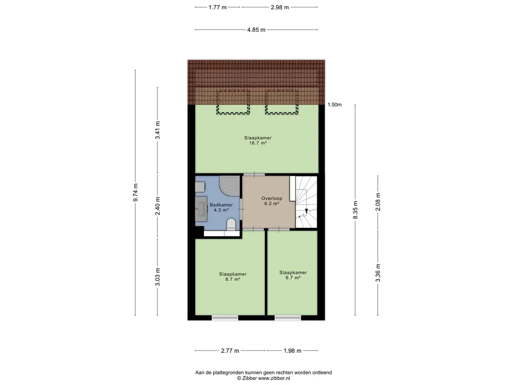 Dankzij het dakraam is er prettig daglicht aanwezig en voelt de ruimte volwaardig.