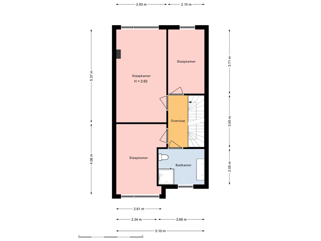 De slaapkamers op deze verdieping zijn voorzien van een lichte laminaatvloer.