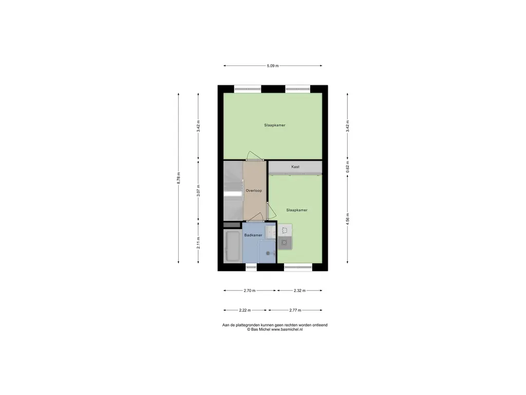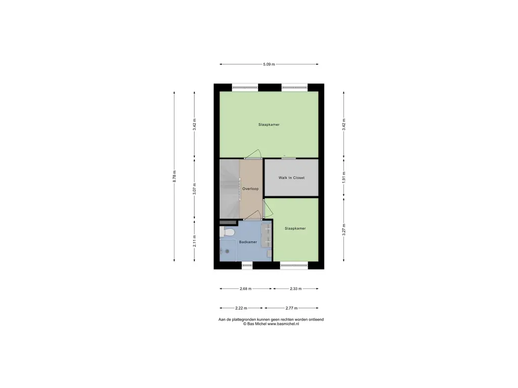 De overloop geeft toegang tot twee ruime slaapkamers en de eerste badkamer.