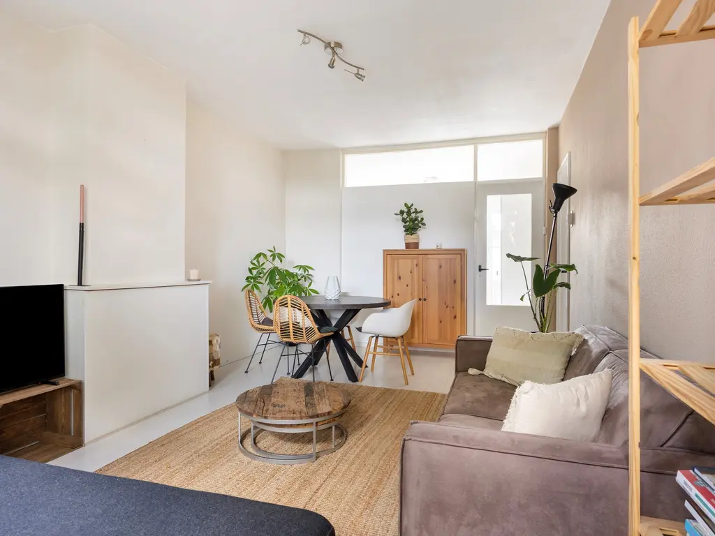 De woonkamer ligt aan de voorkant van de woning en is heerlijk licht door de grote ramen die veel natuurlijk daglicht binnenlaten. Vanuit deze ruimte heeft u directe toegang tot het balkon aan de voorzijde. Bovendien biedt de woonkamer toegang tot de slaapkamer. Dankzij de royale indeling is de kamer flexibel in te richten en vormt dit echt het hart van de woning.