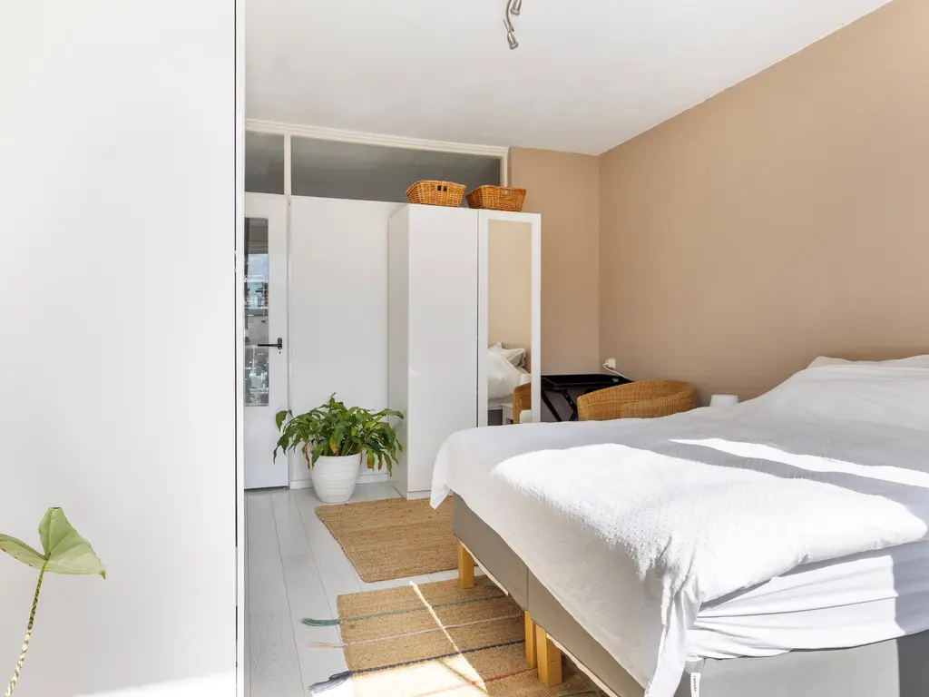 De woning beschikt over een ruime en lichte slaapkamer, met volop plek voor een groot bed en kasten. Vanuit de slaapkamer heeft u direct toegang tot de riante achtertuin,
