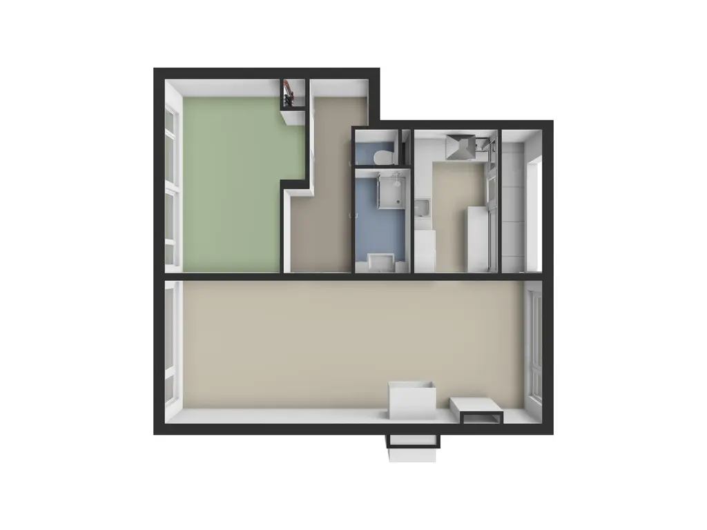 - Balkon gelegen op het zuiden en bereikbaar via de woonkamer en de keuken;
