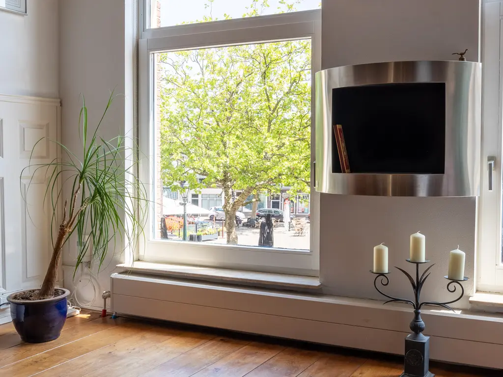 The apartment is ideally situated in the heart of Schiedam, between the Schie River and the Grote Markt. From the living room, you have a direct view of the lively Grote Markt, home to several cafés, restaurants, and shops. All amenities such as supermarkets, dining options, and the library are within walking distance. Public transport and main roads are easily accessible, providing quick connections to nearby cities like Rotterdam, The Hague, and Delft.
