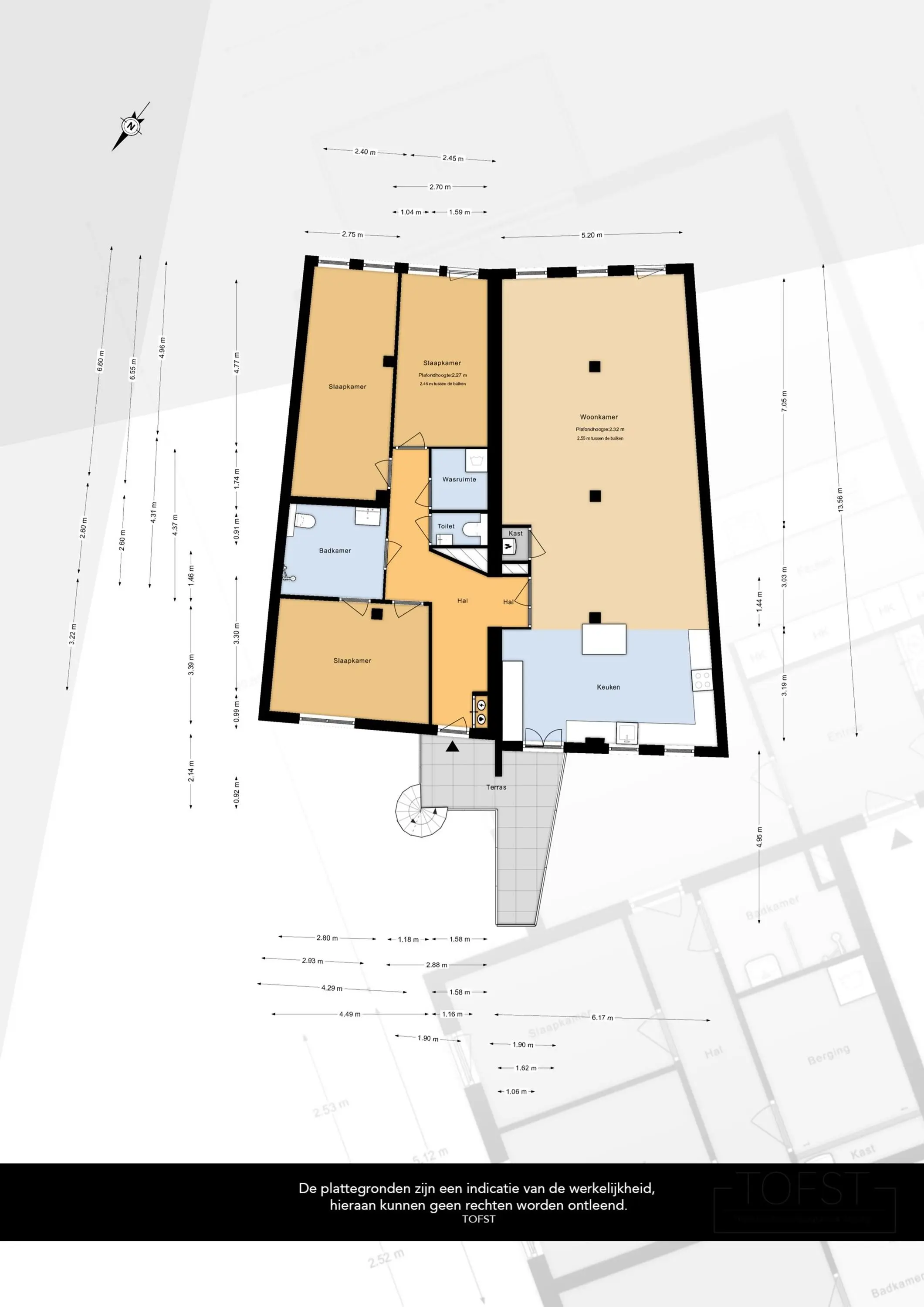 Via de entree aan de Schiezijde betreedt u de hal met toegang tot de berging, het trappenhuis en de lift. Op de tweede verdieping bevindt zich de voordeur van het appartement. Eenmaal binnen vindt u aan de voorzijde een slaapkamer met directe toegang tot de badkamer. De badkamer is tevens bereikbaar via de hal. Aan de voorzijde bevinden zich nog twee slaapkamers. Verder is er een aparte wasruimte en een separaat toilet. De ruime woonkamer aan de achterzijde biedt een prachtig uitzicht op de Grote Markt en beschikt over sfeervolle balken. Aan de achterzijde bevindt zich ook de riante open keuken.
