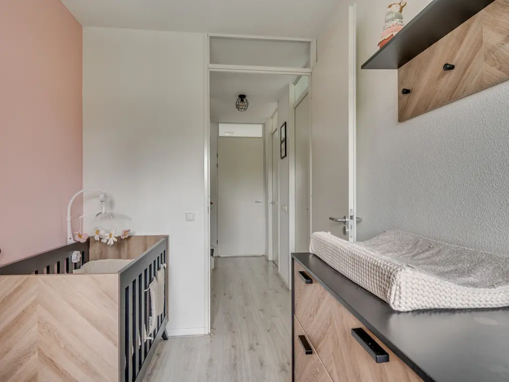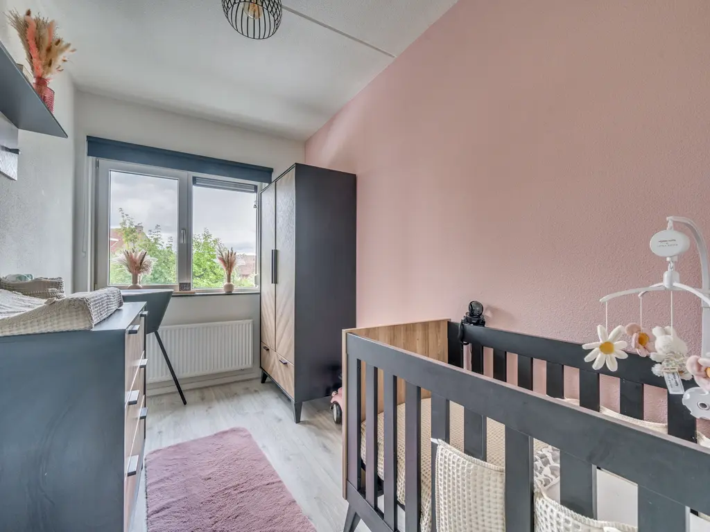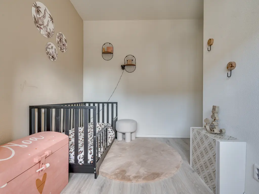 De slaapkamers en de overloop zijn afgewerkt met een lichte, strakke laminaatvloer, die de ruimtes een frisse en moderne uitstraling geeft.