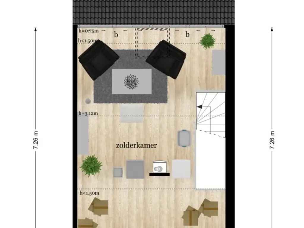 Via een vaste trap bereik je de ruime zolderverdieping, een verrassend multifunctionele ruimte met volop mogelijkheden. Momenteel ingericht als extra (slaap)kamer met een Velux-dakraam, biedt deze verdieping ook de aansluitingen voor witgoed, de cv-ketel en mechanische ventilatie. Achter strak afgewerkte knieschotten bevindt zich een royale bergruimte, ideaal om spullen netjes uit het zicht te bewaren.