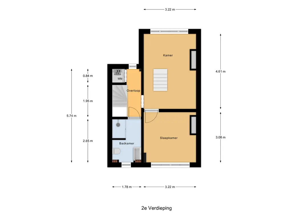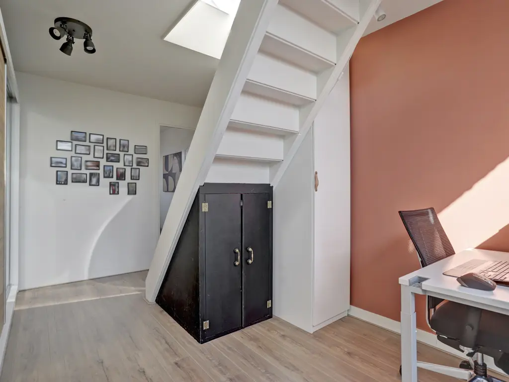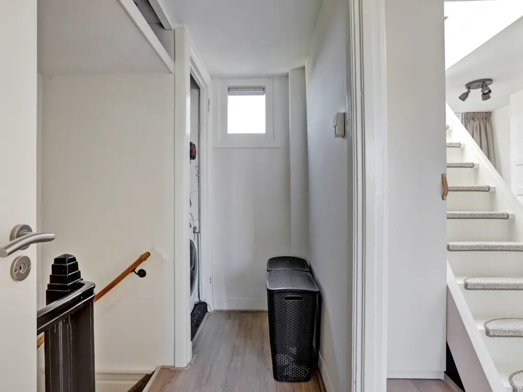 De overloop biedt toegang tot twee slaapkamers en de badkamer. Ook vindt u hier de kast met CV-opstelling en wasmachineaansluiting.
