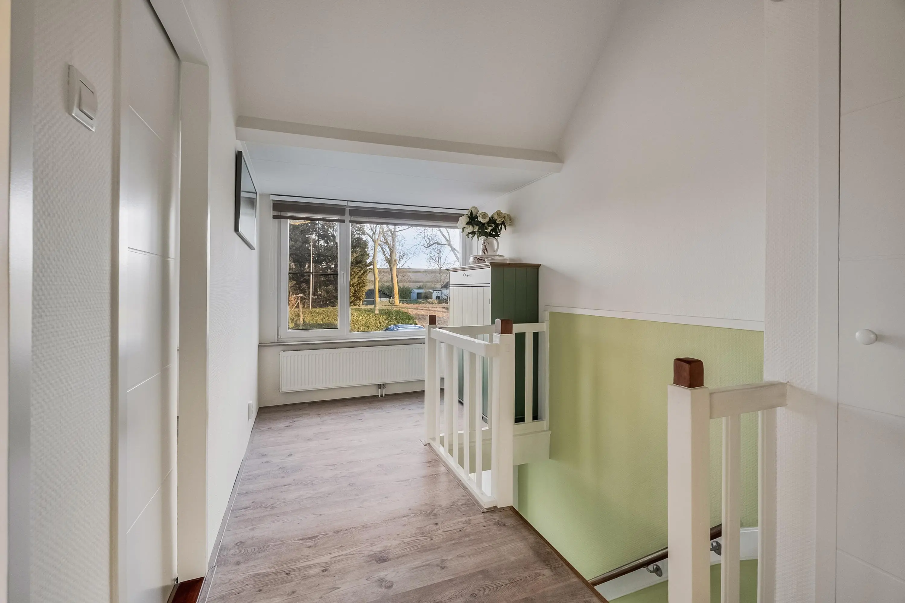 Ruime overloop met een vaste bergkast met stelplaats voor de HR C.V. combiketel (Remeha 2015). Dankzij de dakkapel aan de voorzijde van de woning biedt de overloop voldoende natuurlijke lichtinval. Toegang tot alle vertrekken. Via de overloop is de bergvliering bereikbaar.