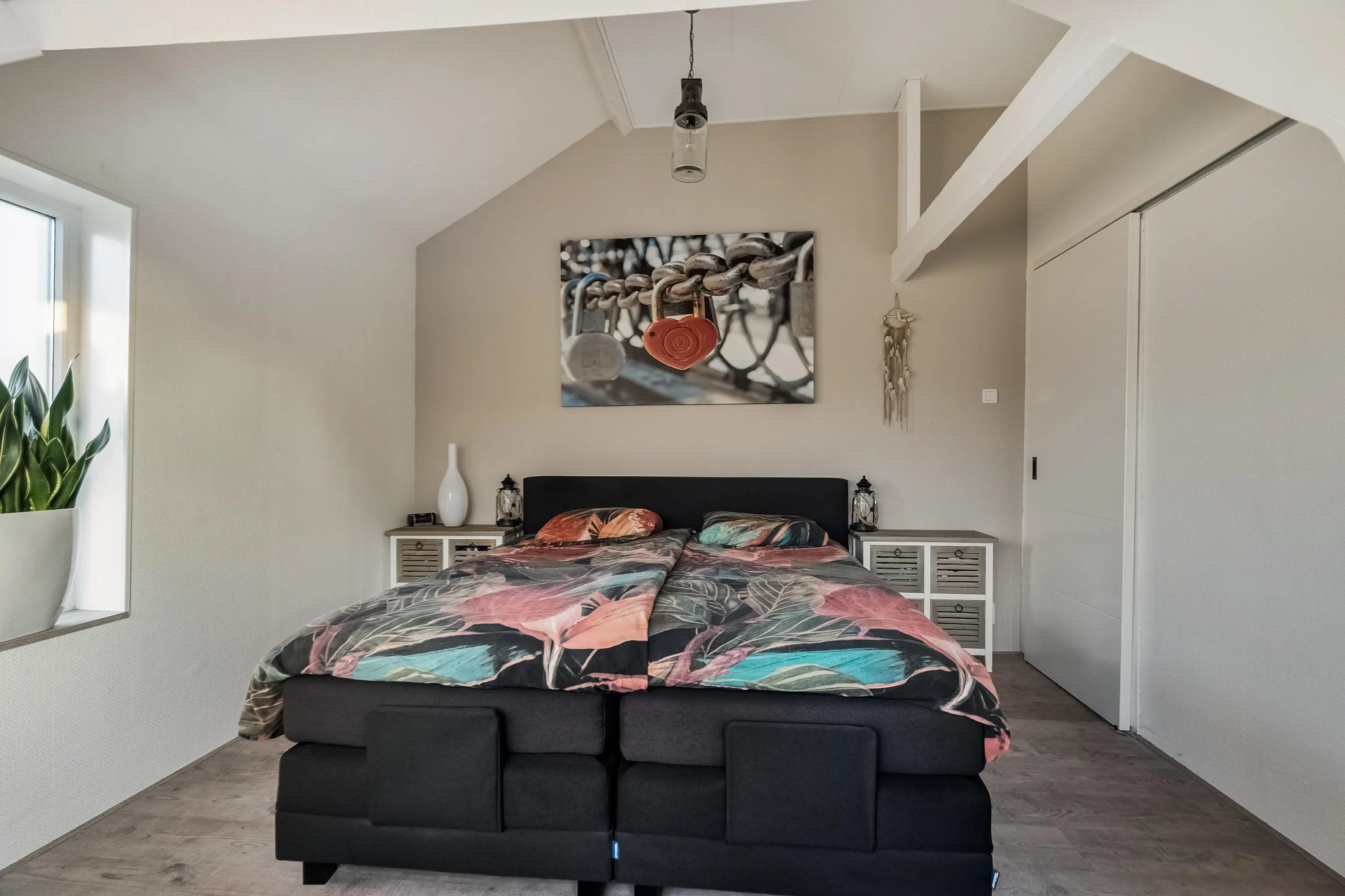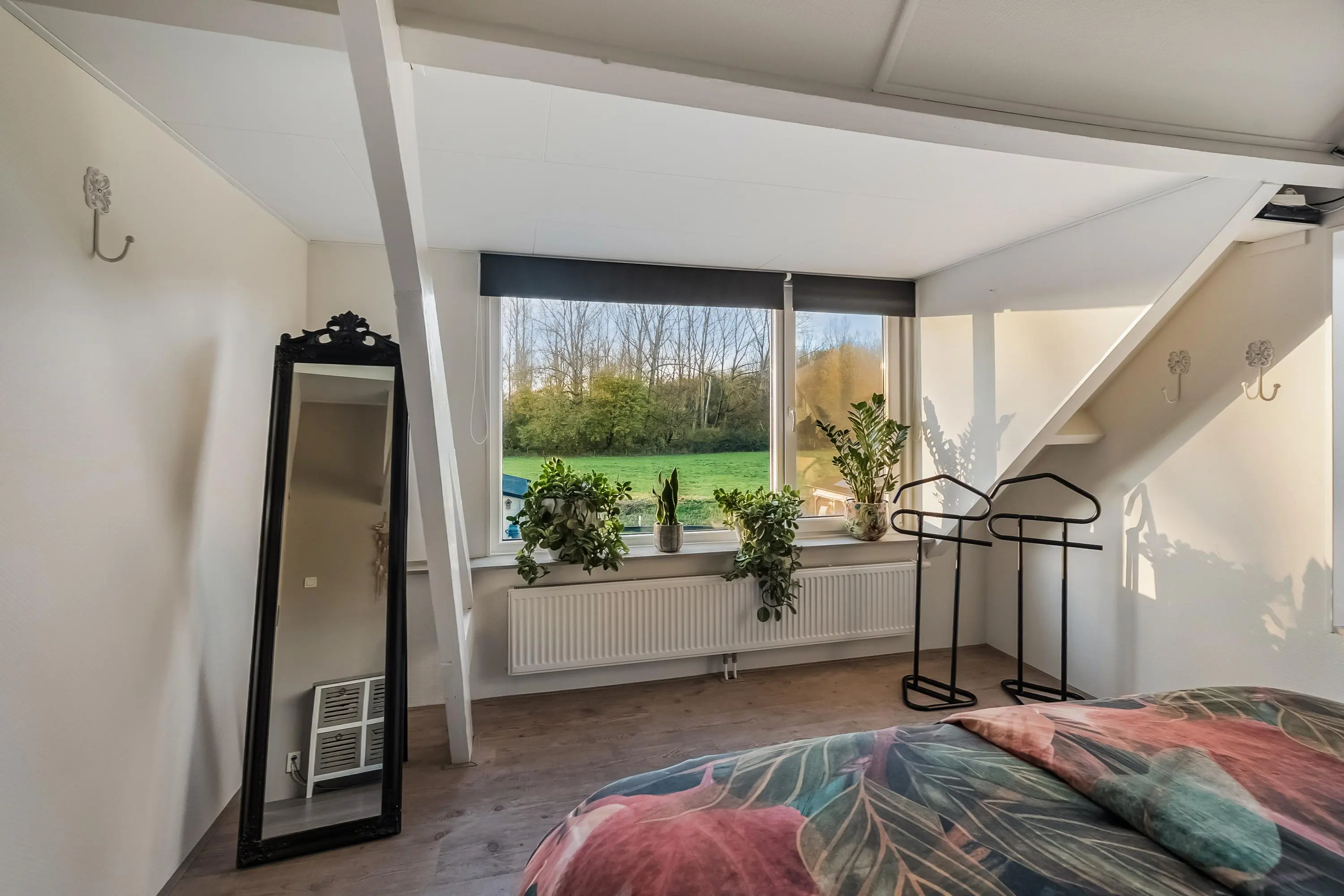 Slaapkamer 1 (ca. 14 m2) is gelegen aan de achterzijde van de woning en beschikt over een deel van de dakkapel aan de achterzijde van de woning.