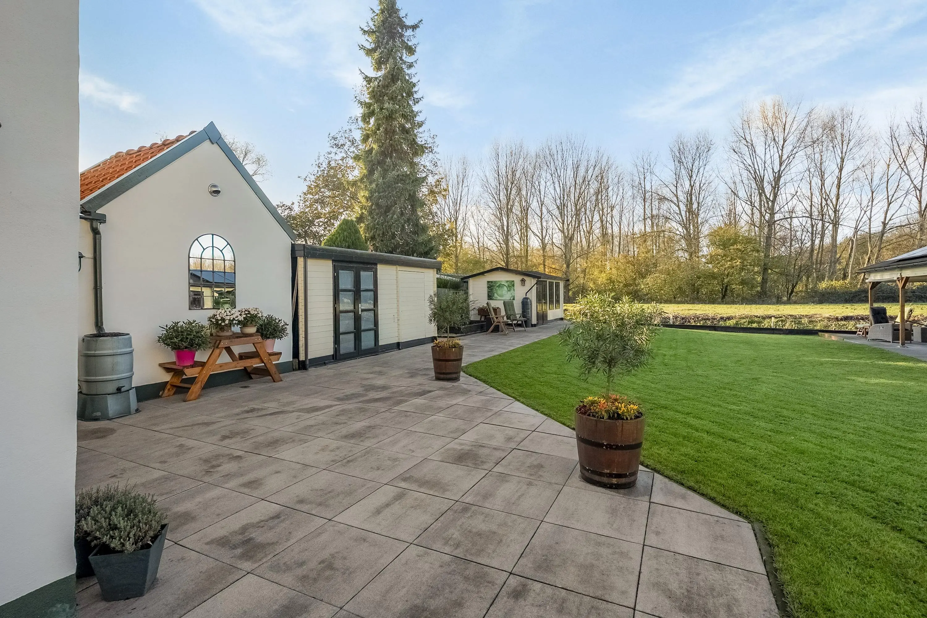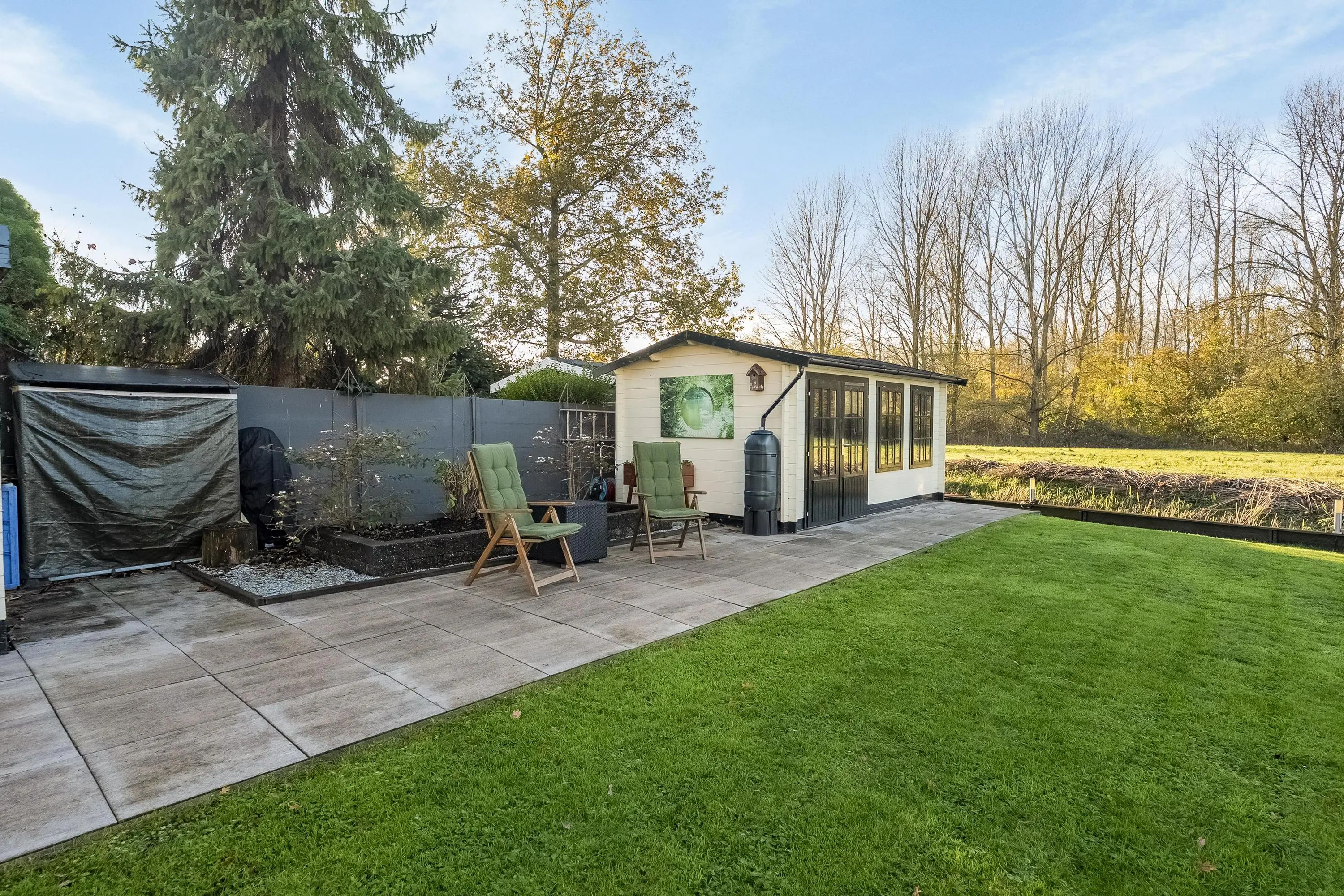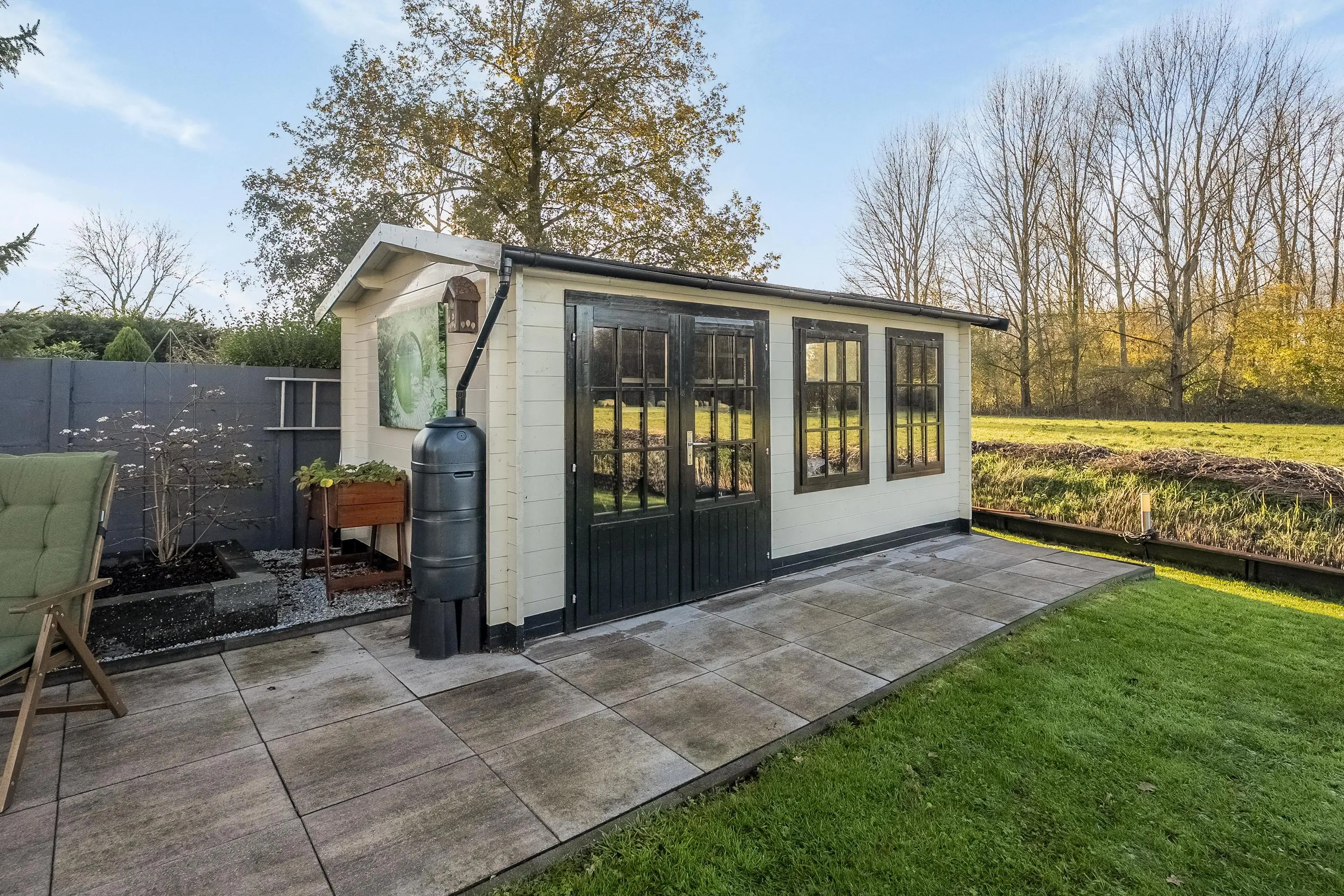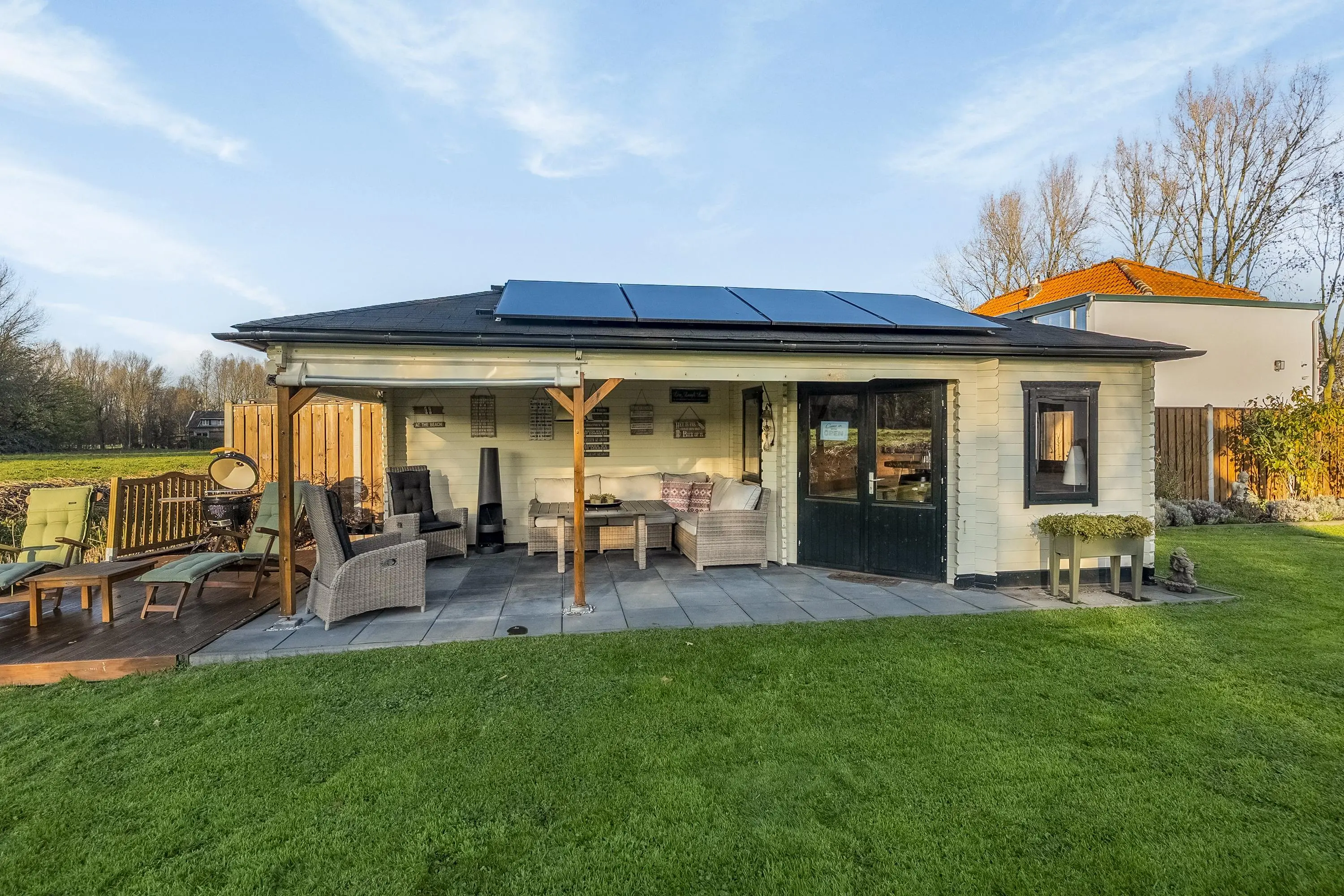 De royale tuin is gelegen op het noordwesten en is fraai aangelegd met terrassen en sierbeplanting. Verder is de tuin voorzien van grasveld, twee bergingen met elektra, een houten schuur en een tuinhuisje met overkapping en een gezellig terras.