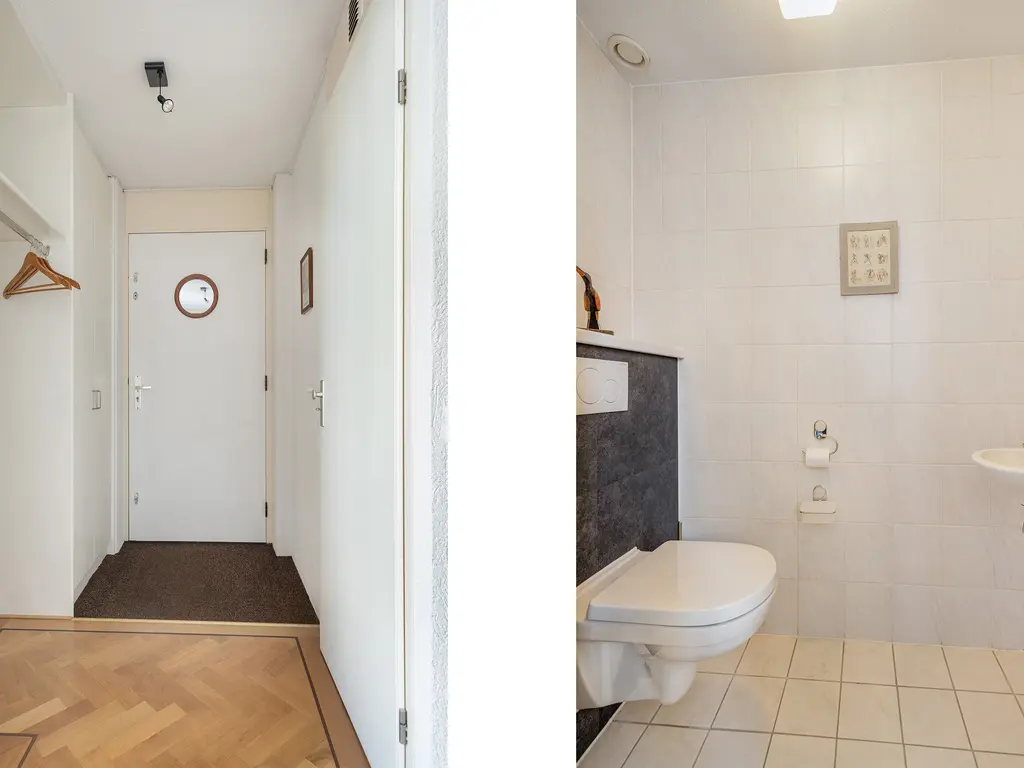 Bij binnenkomst in het appartement valt direct de ruime hal op, die toegang biedt tot alle vertrekken. De woonkamer is heerlijk licht dankzij de vele ramen aan zowel de voor- als de zijkant en biedt een prachtig uitzicht op de waterpartij en de omgeving. Via de grote schuifpui stapt u zo het zonnige terras op het westen op – de perfecte plek om van de middag- en avondzon te genieten.