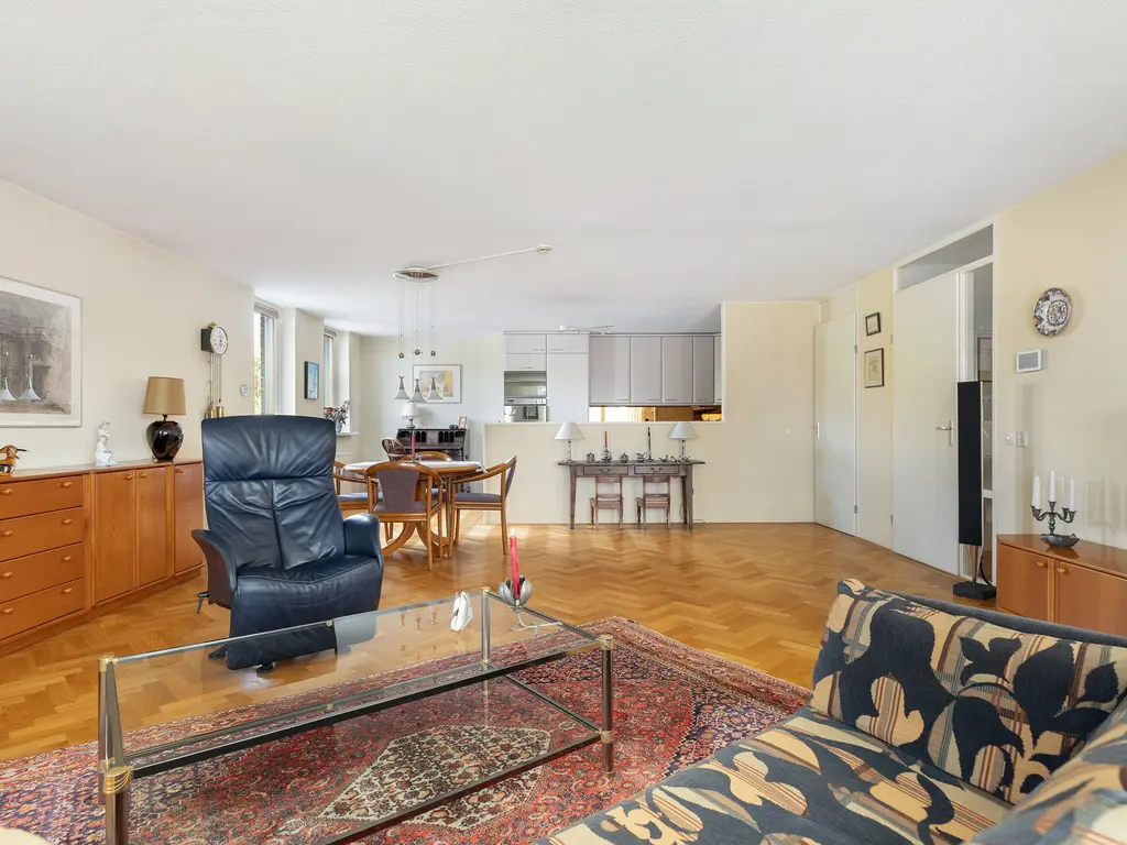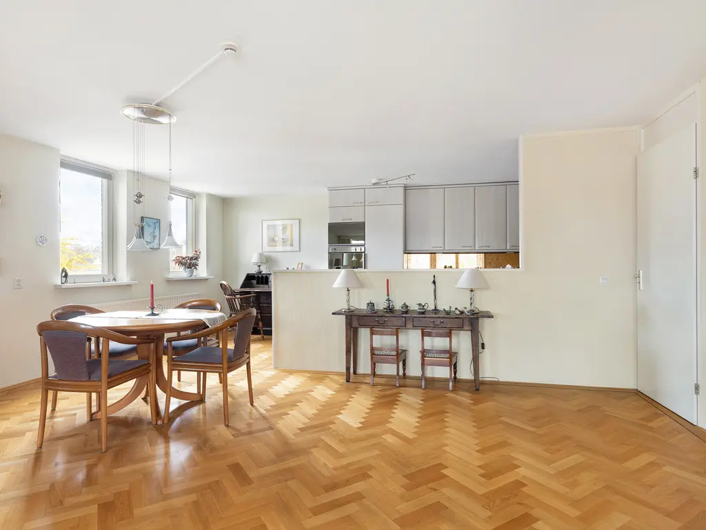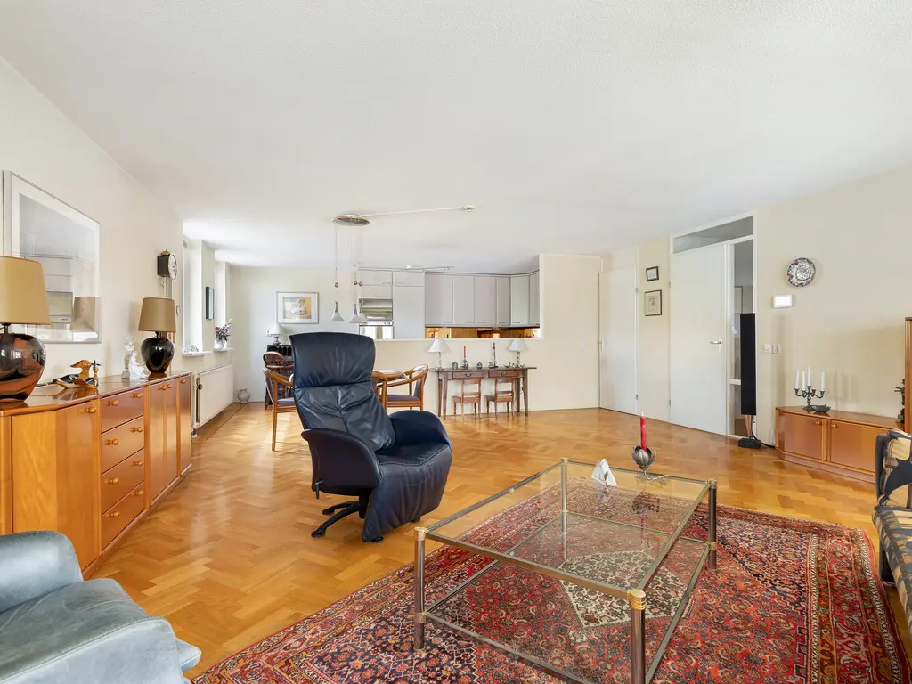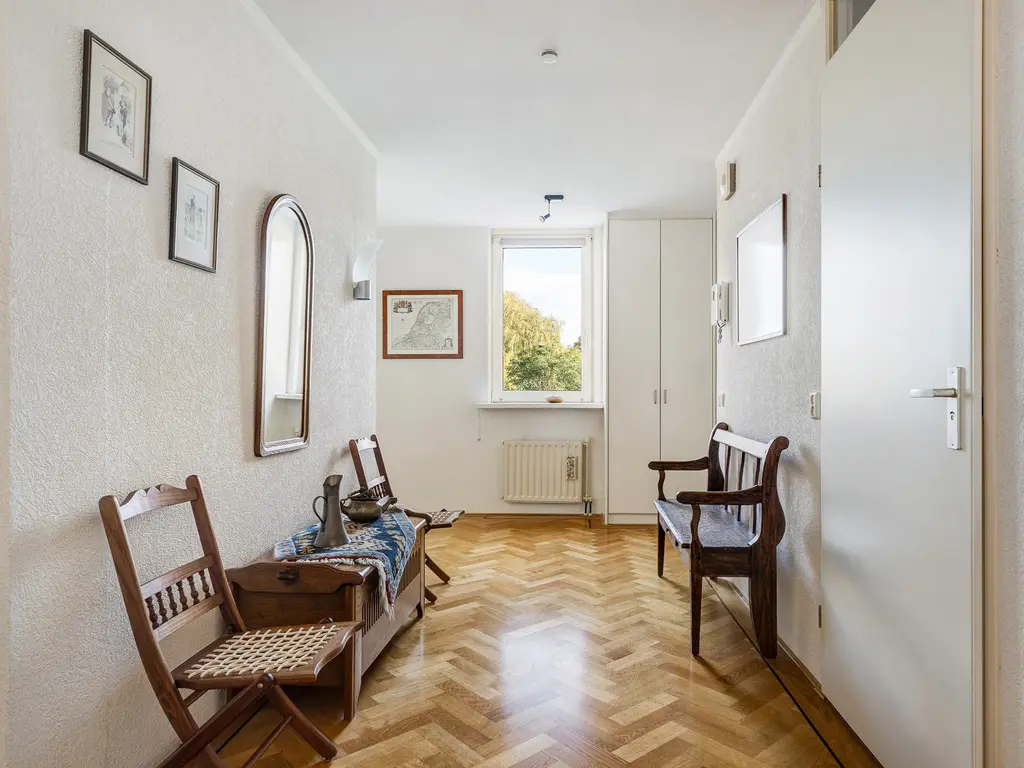 Vrijwel het gehele appartement is afgewerkt met een prachtige visgraat parketvloer met wengé bies, wat het geheel een luxe en warme uitstraling geeft.