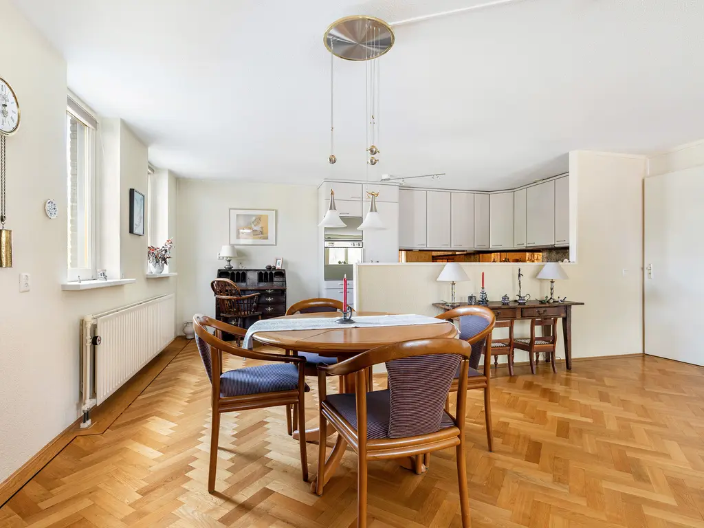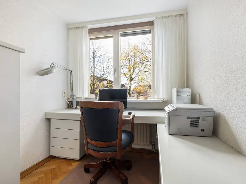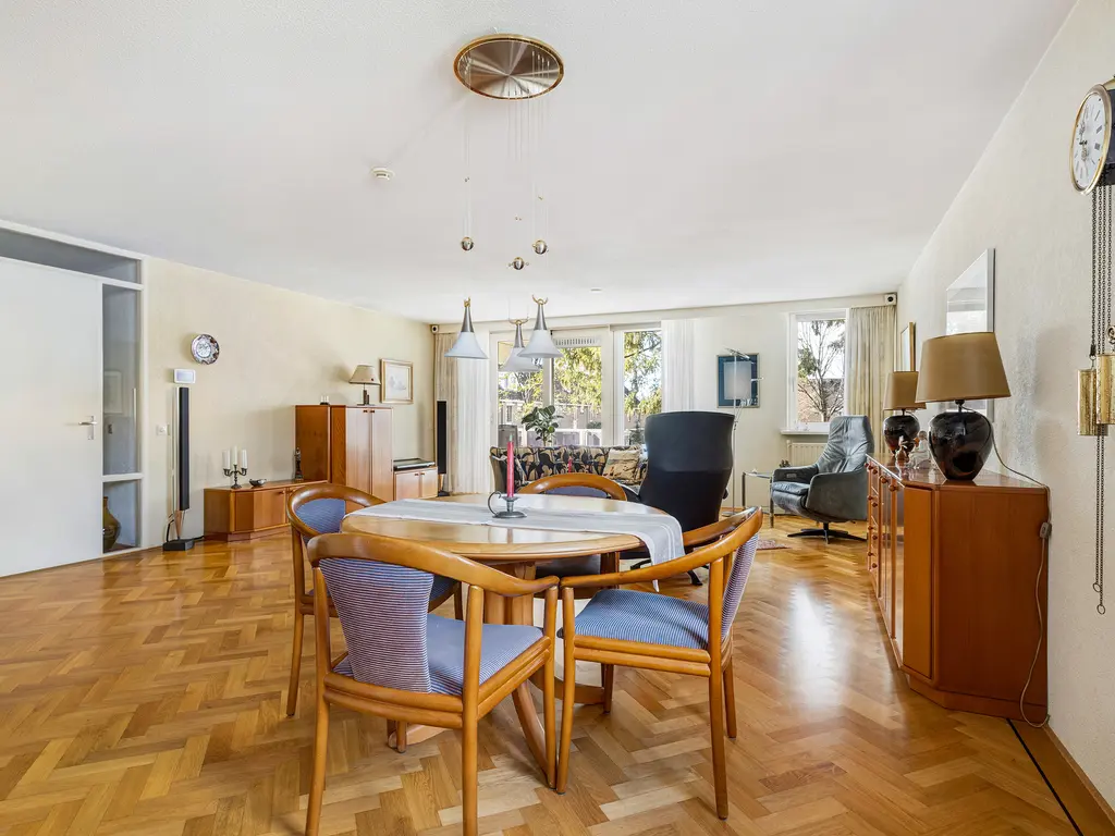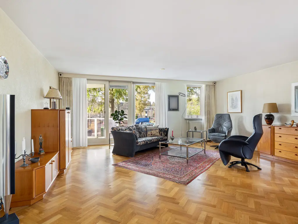 Vrijwel het gehele appartement is afgewerkt met een prachtige visgraat parketvloer met wengé bies, wat het geheel een luxe en warme uitstraling geeft.
