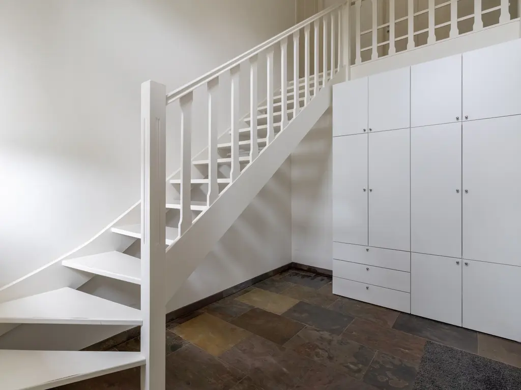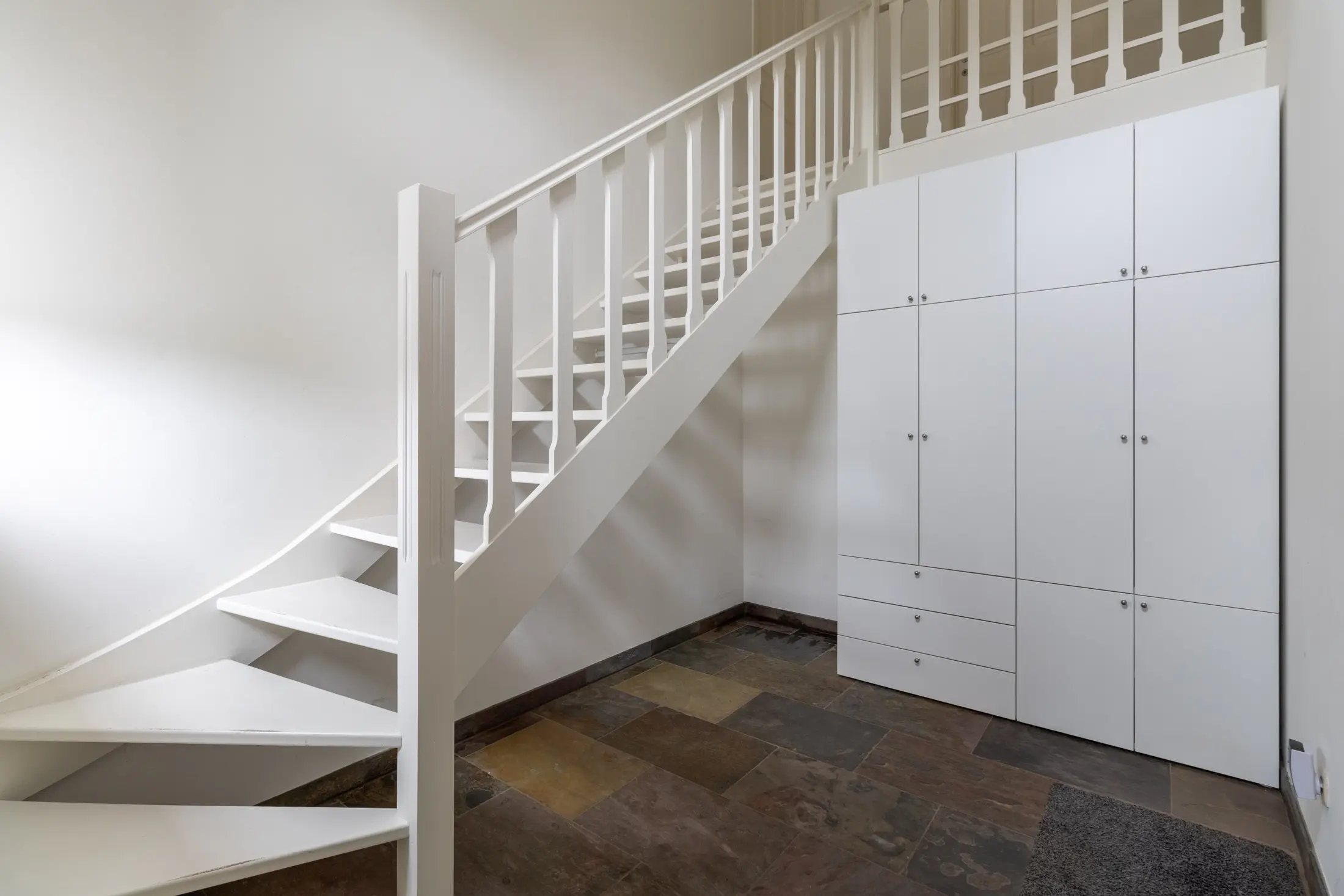 De zolder, bereikbaar via een valtrap, zorgt voor extra bergruimte.