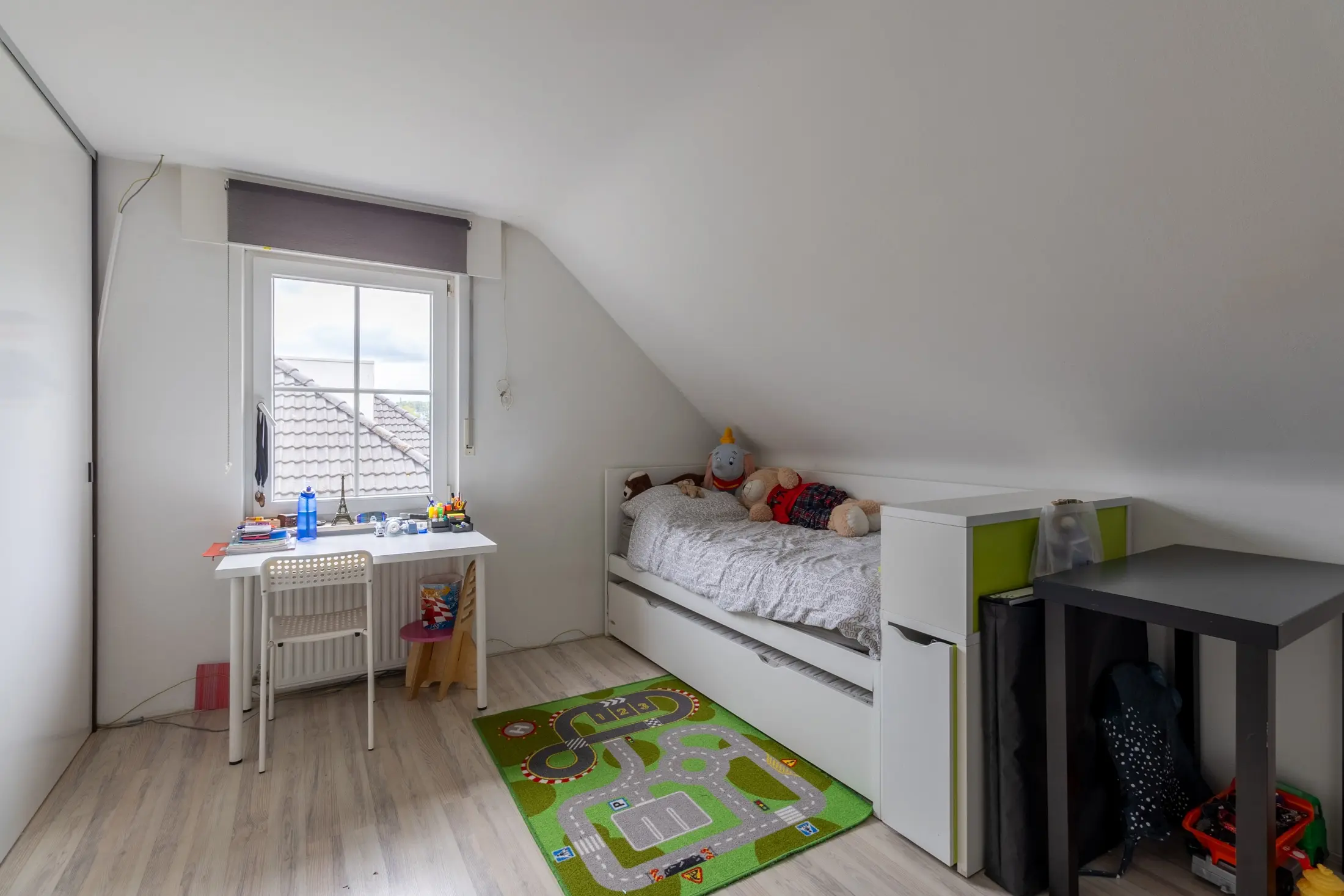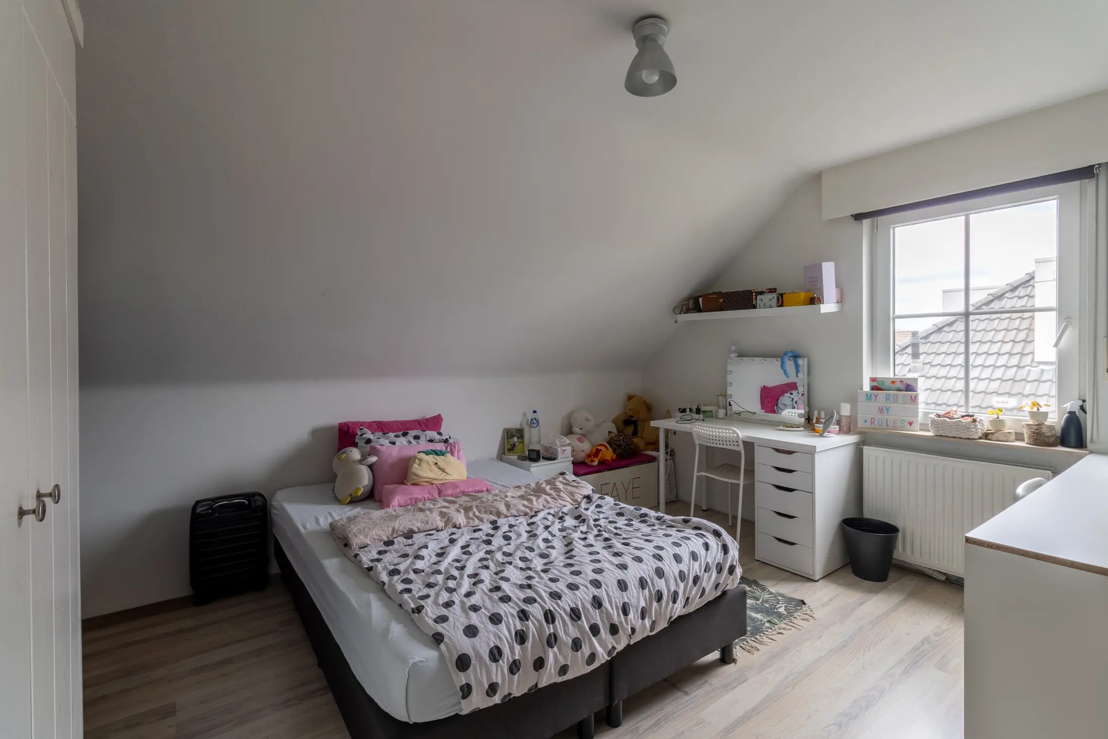 Buiten lonkt een volledig omheinde oost-gerichte tuin: ’s ochtends ontbijt je op het overdekt terras, ’s namiddags schuif je de zonneluifel uit voor verkoelende schaduw.