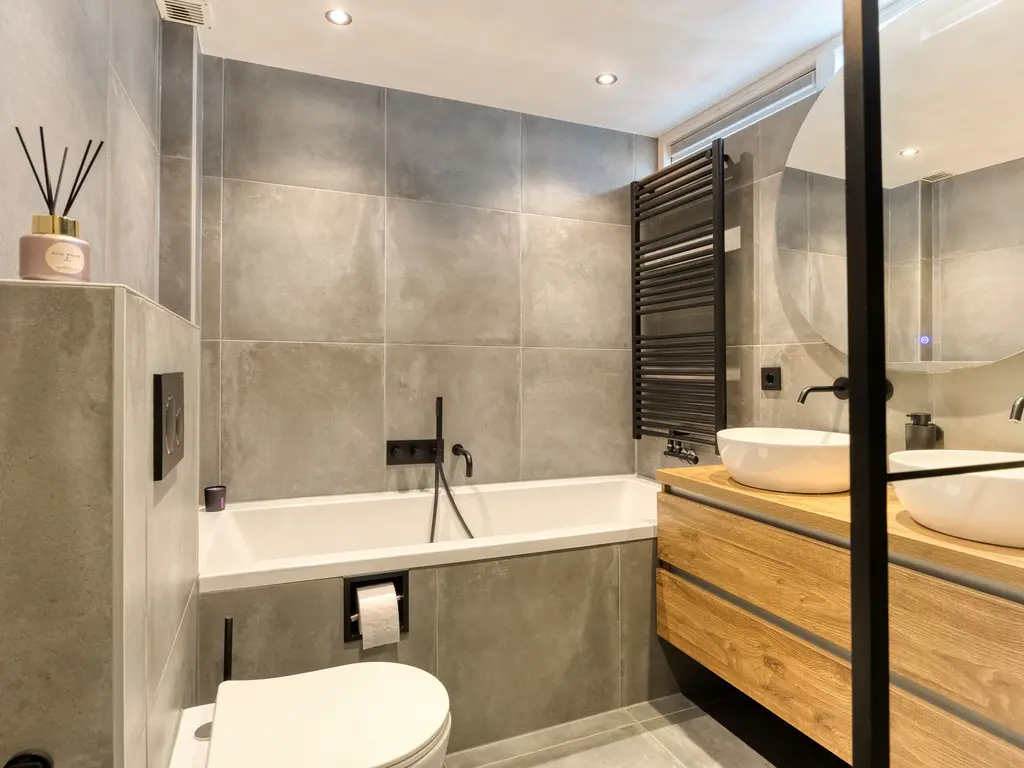 On the first floor there are three spacious bedrooms, all neatly finished and fitted with maintenance-free window frames and HR++ double glazing. The bathroom was completely renovated in 2021 and exudes luxury, featuring a bathtub, walk-in shower, modern washbasin unit, toilet and designer radiator.