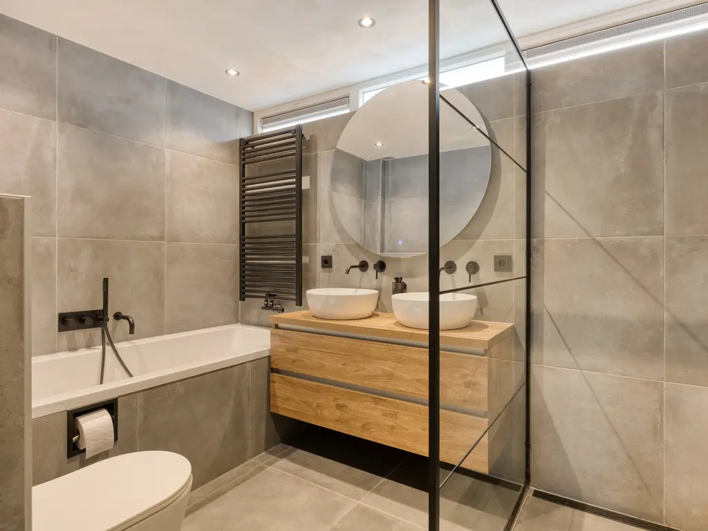 On the first floor there are three spacious bedrooms, all neatly finished and fitted with maintenance-free window frames and HR++ double glazing. The bathroom was completely renovated in 2021 and exudes luxury, featuring a bathtub, walk-in shower, modern washbasin unit, toilet and designer radiator.