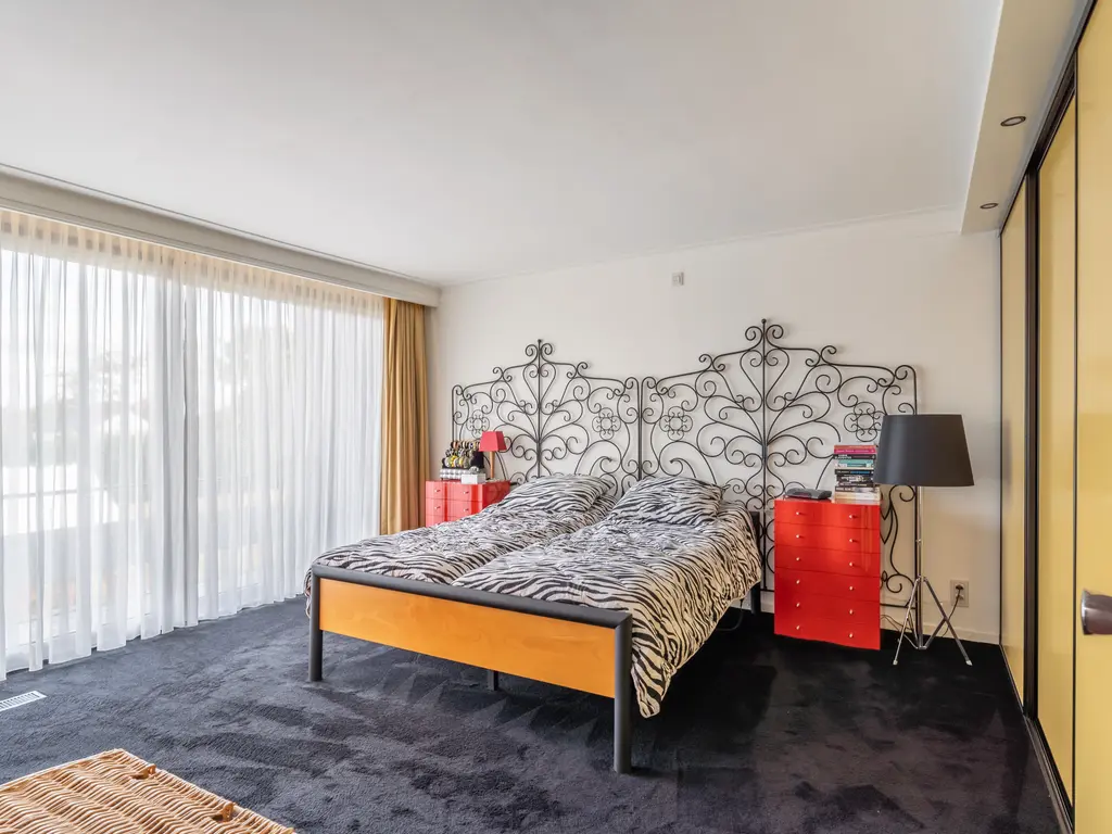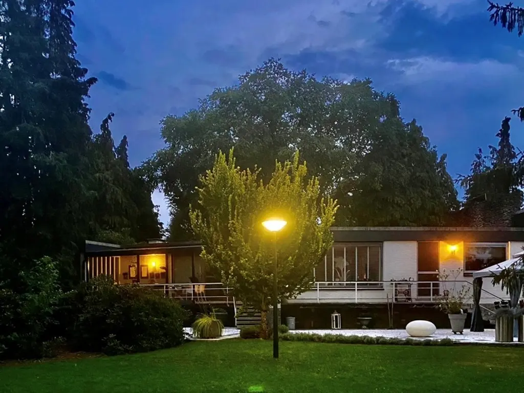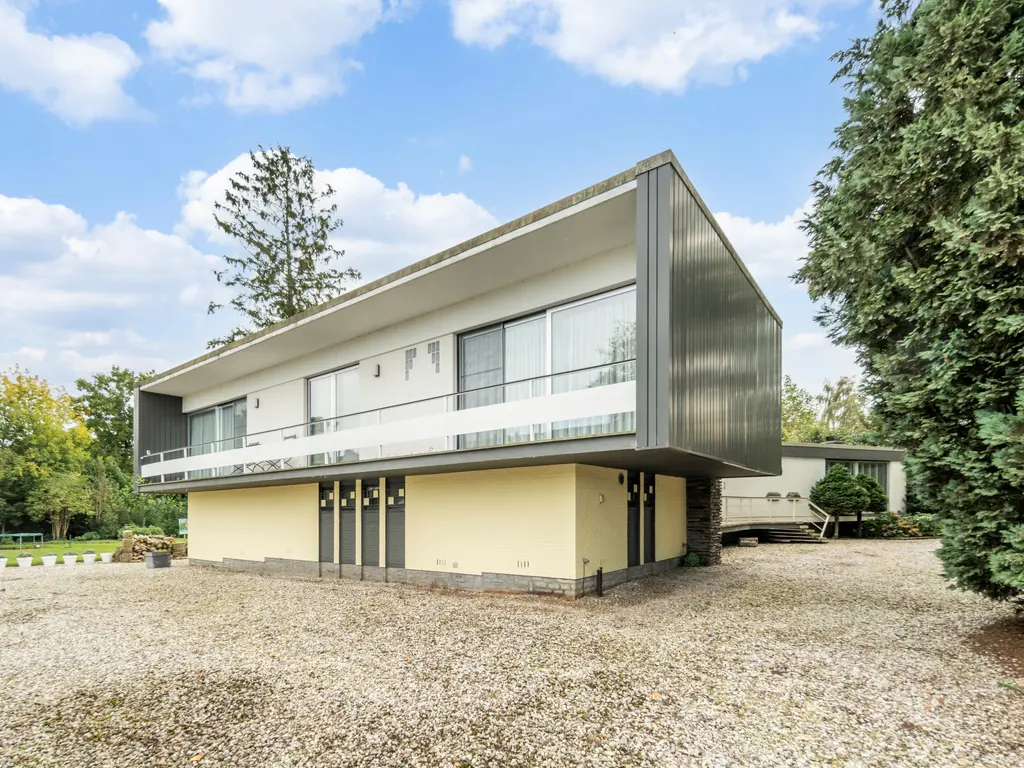 Deze Amerikaanse bungalow van de hand van de Belgische architect Alfonse Roose (Mechelen-België) en geïnspireerd door de Amerikaanse architect Frank Lloyd Wright is gesitueerd op een kavel van ca. 4500m2 en wordt omgeven door een fraai aangelegde en verzorgde tuin.