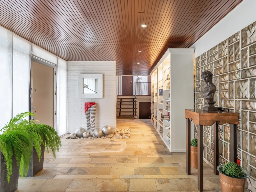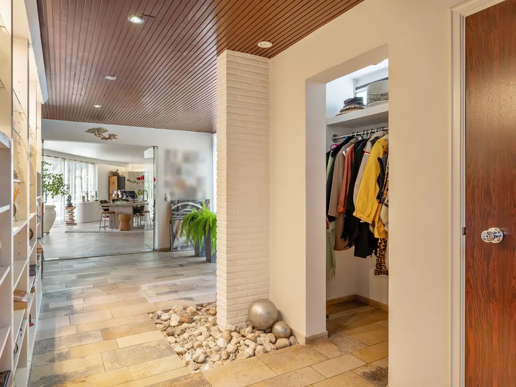 Via deze entree komt u binnen in een grote hal, waarna u via een dubbele glazen deur de living bereikt.