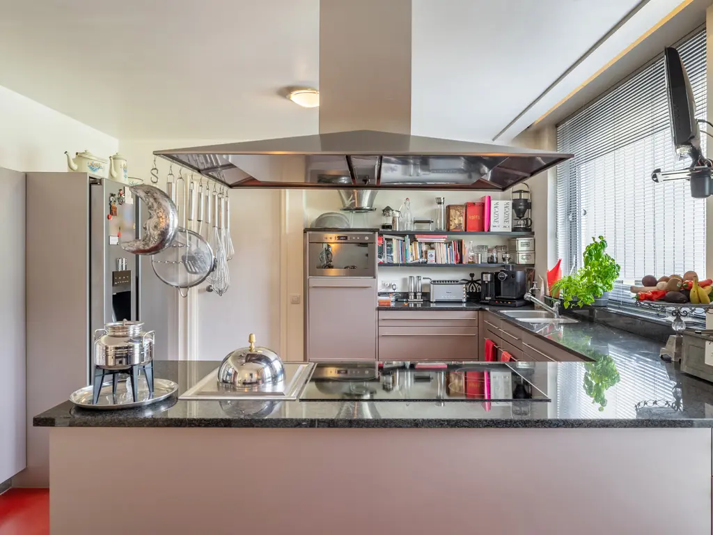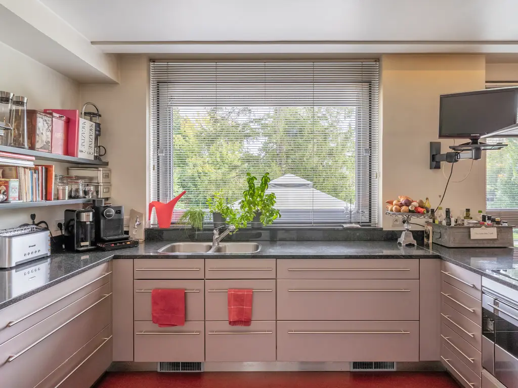 Een complete woonkeuken staat te trappelen om uw culinaire hoogstandjes te omarmen.