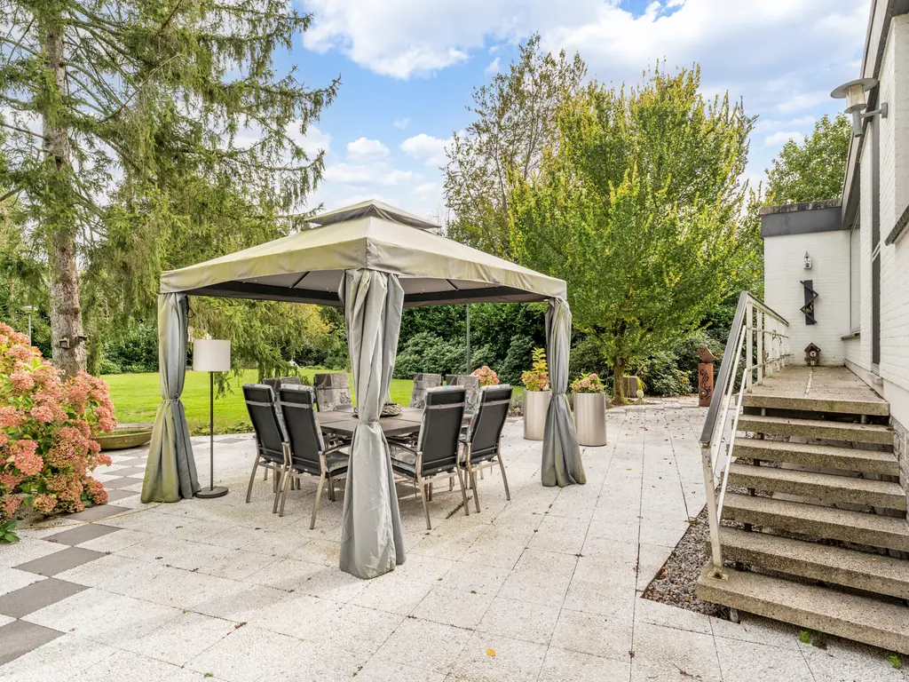 De enorme tuin ligt op het zuiden en door de aanwezigheid van de twee terrassen en een royale overkapping kunt u altijd de zon of de schaduw opzoeken.