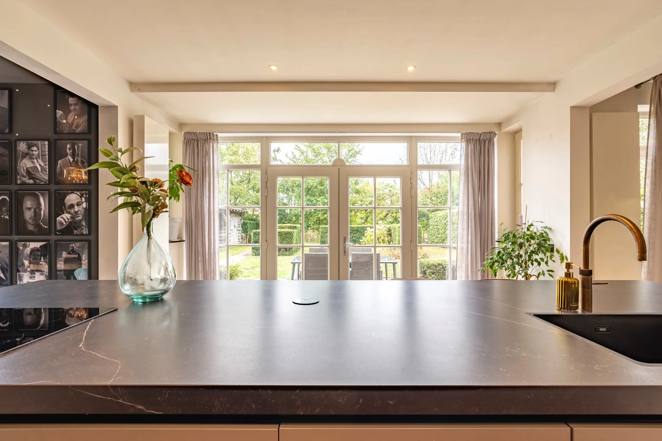 De aangrenzende open keuken is het hart van het huis en is recent vernieuwd.