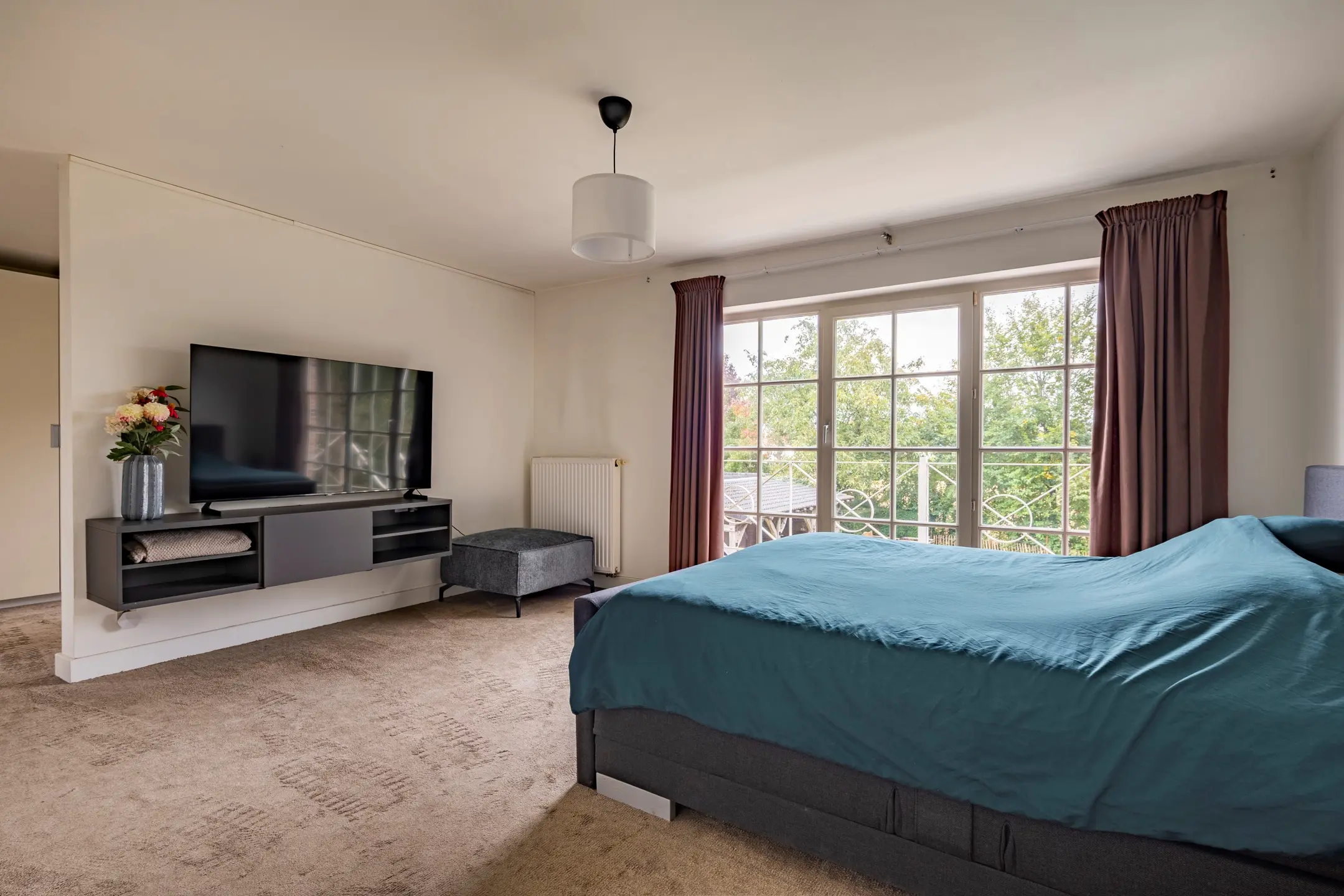 De masterbedroom heeft een eigen dressing, een badkamer voorzien van dubbele wastafel en ligbad/douche combinatie en een ruim balkon met zicht op de tuin.