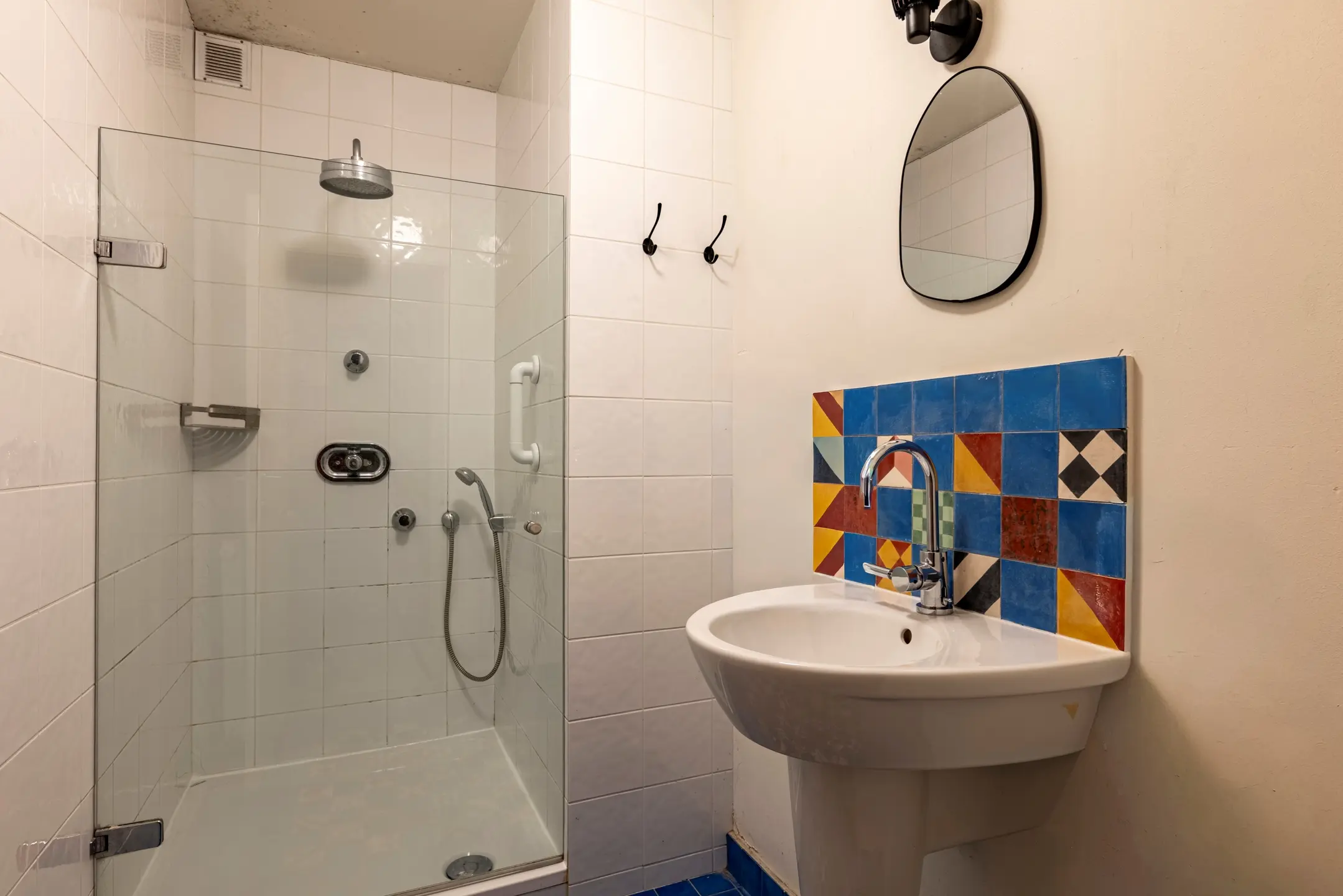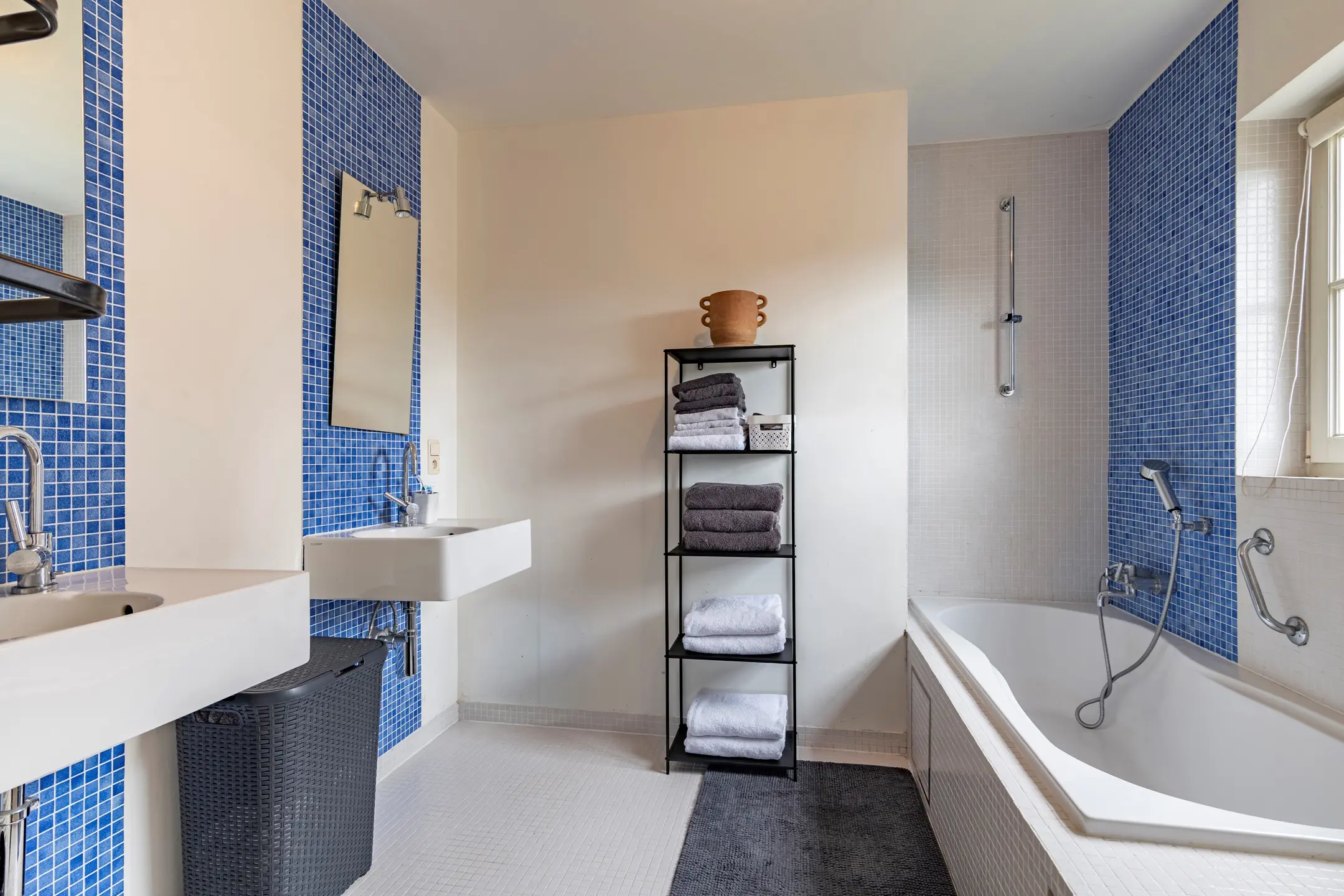 Op de gang bevindt zich nog een seperaat toilet en een extra badkamer met regendouche en wastafel.