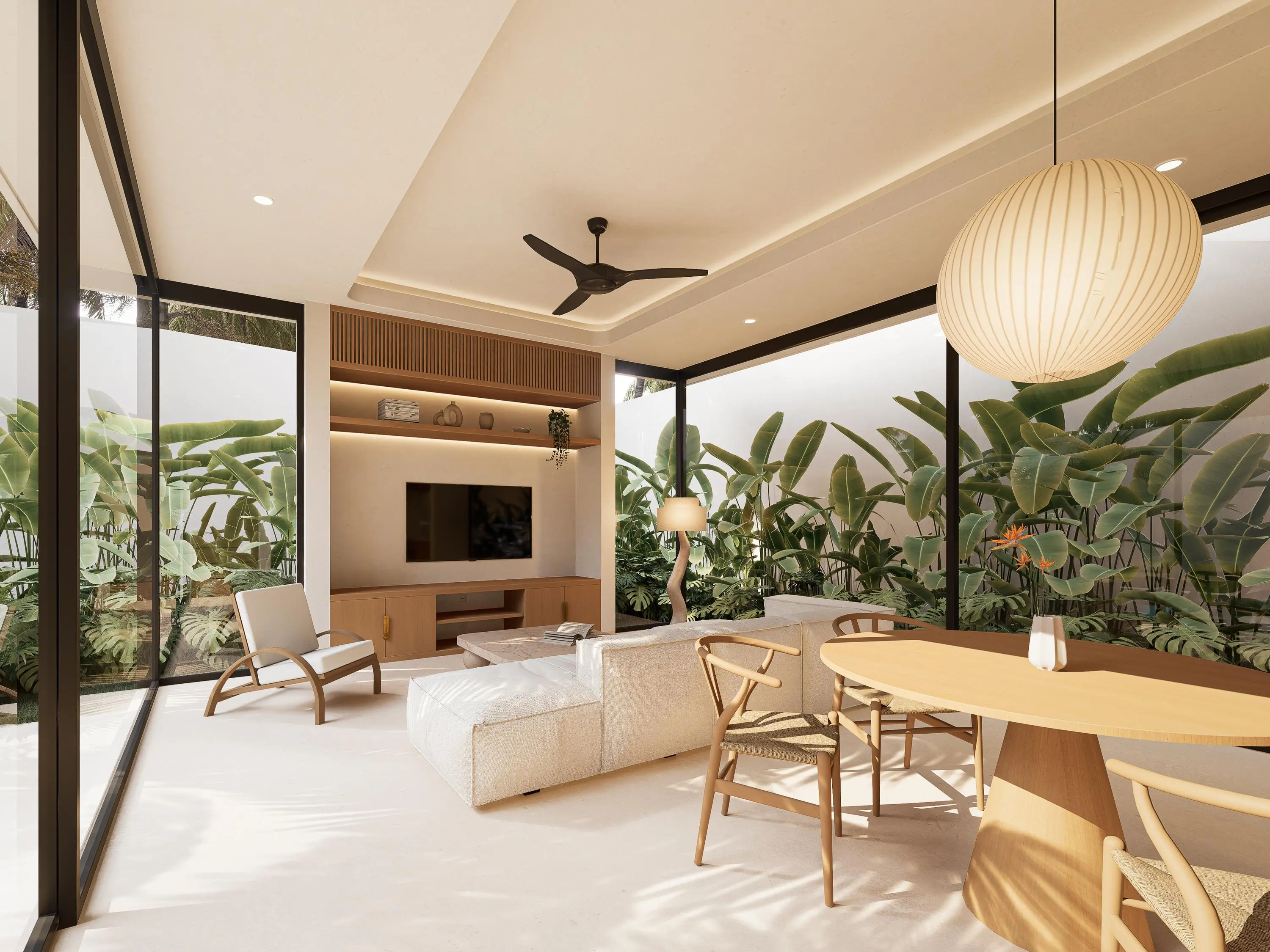 Welcome to Baileo, a unique and exclusive new development featuring six luxury villas in the sought-after area of Pererenan, just minutes from Canggu. Experience the perfect blend of modern architecture, Indonesian heritage, and ultimate comfort in the heart of idyllic Bali. Each villa boasts natural materials, high ceilings, a bright living room with panoramic windows, and a fully equipped kitchen. Outside, enjoy your private terrace, lush tropical garden, and personal swimming pool.