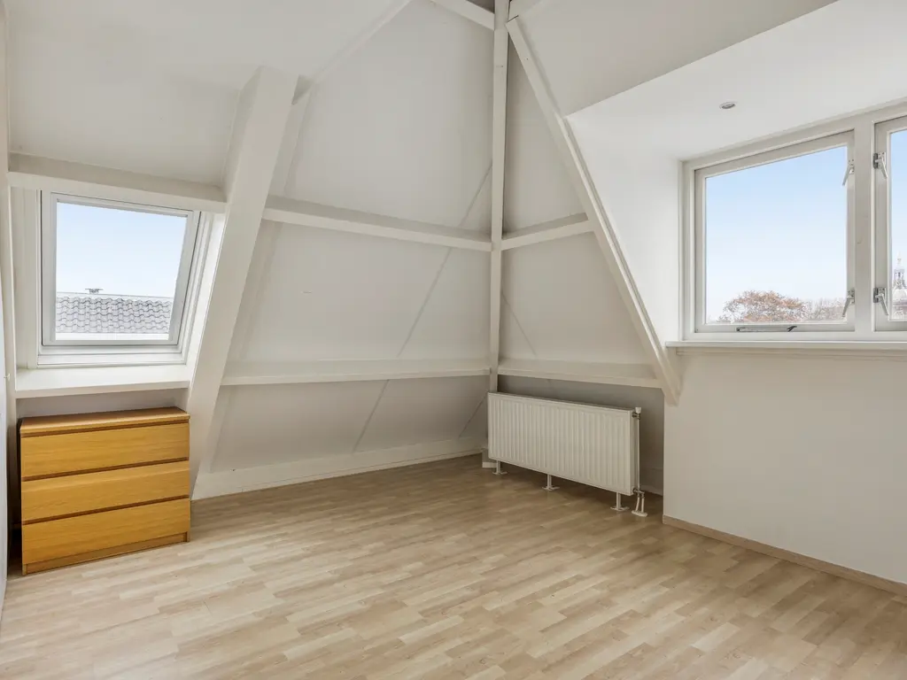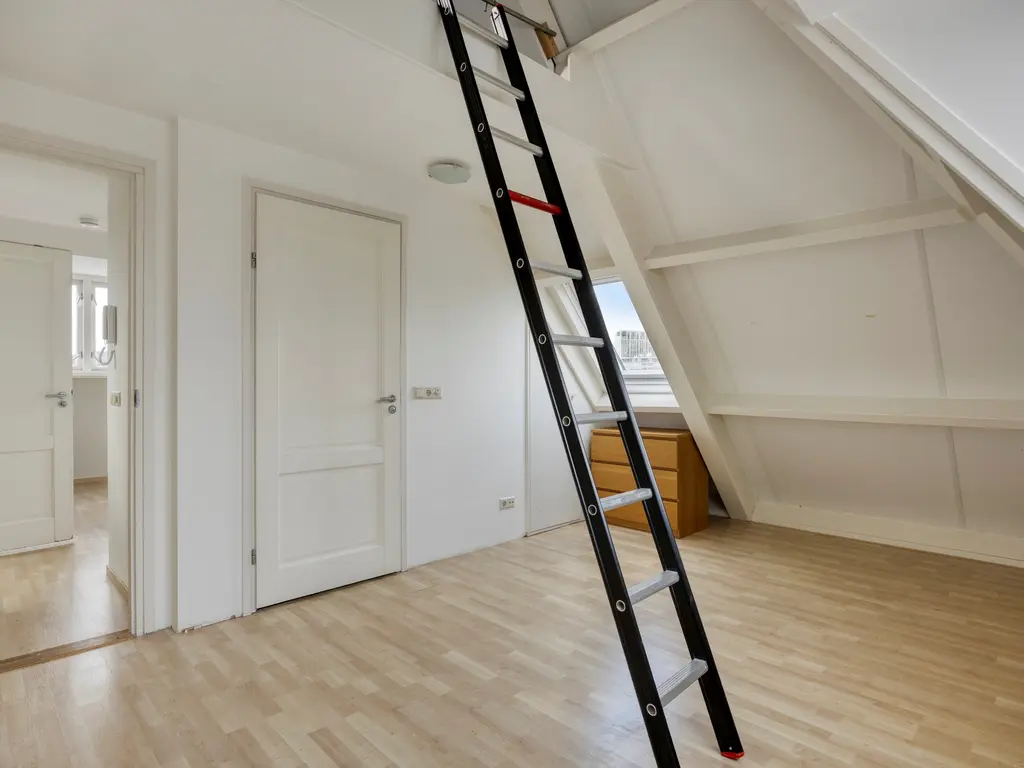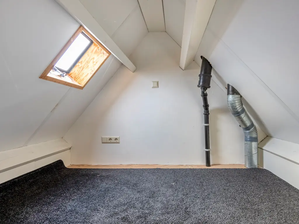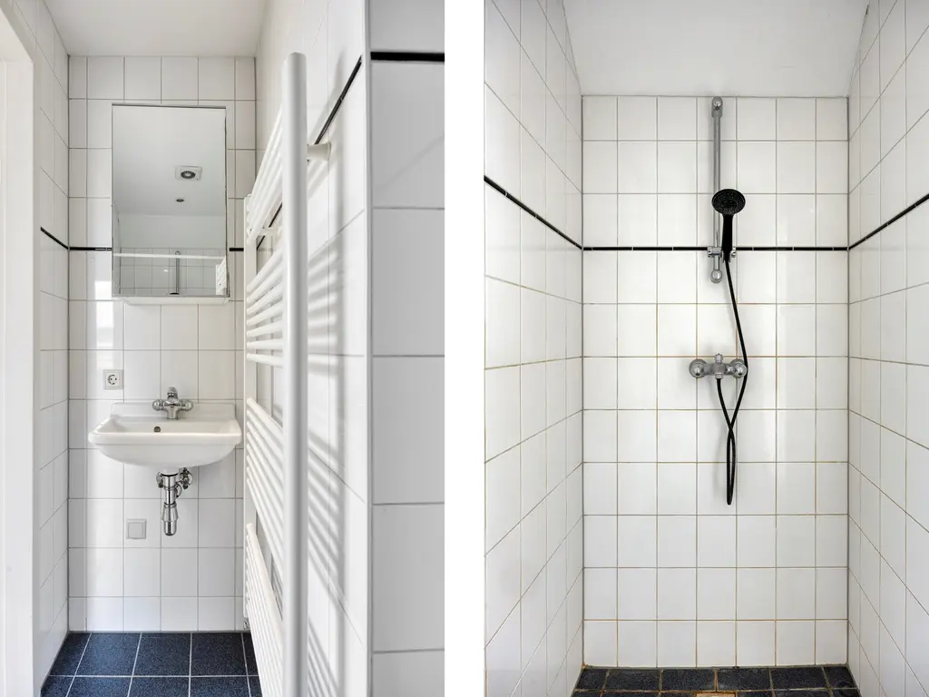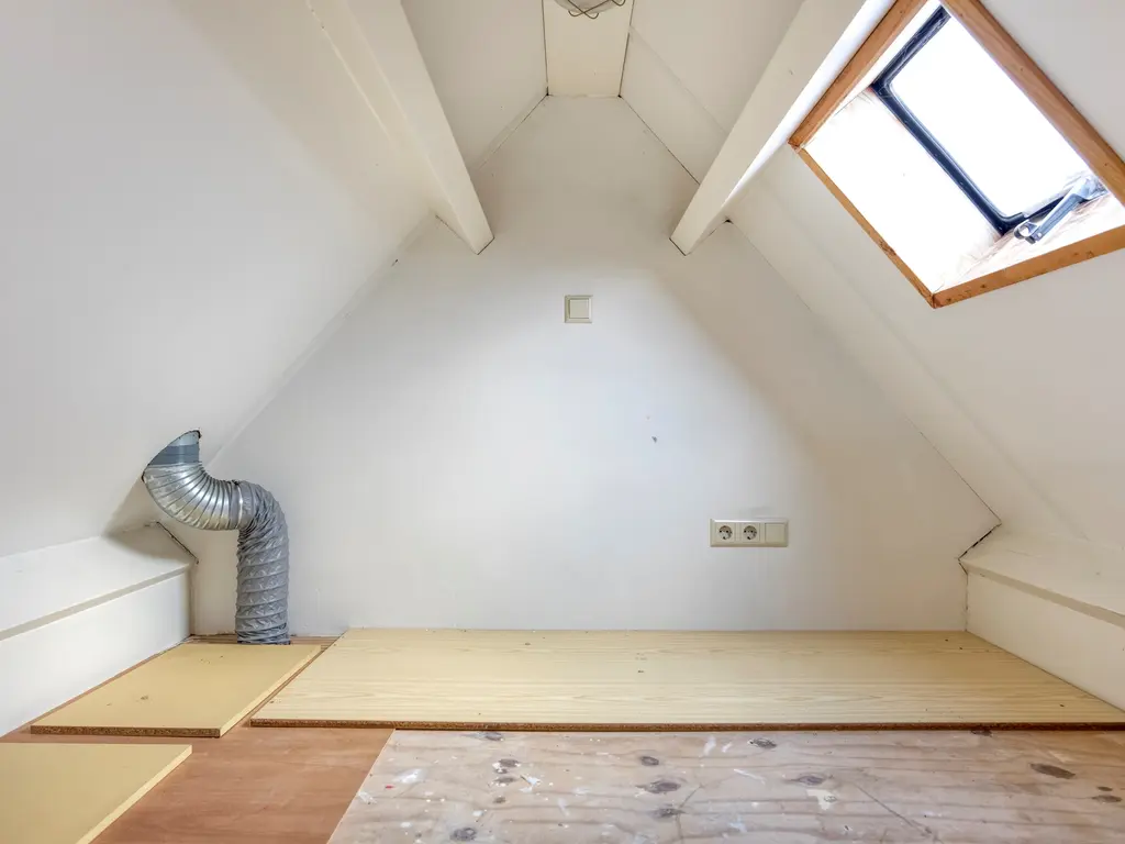 De slaapkamer is comfortabel en rustig gelegen, met een fraai uitzicht over de historische daken van Leiden. De knusse badkamer beschikt over een inloopdouche, wastafel en designradiator. In een aparte kast vindt u de cv-installatie en de aansluiting voor de wasmachine, met extra opbergruimte. Ook het toilet is separaat en voorzien van een fonteintje.