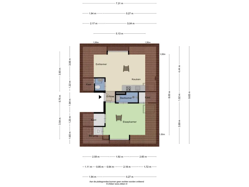 • Totale vloeroppervlakte (zonder schuine kanten): ca. 80 m²