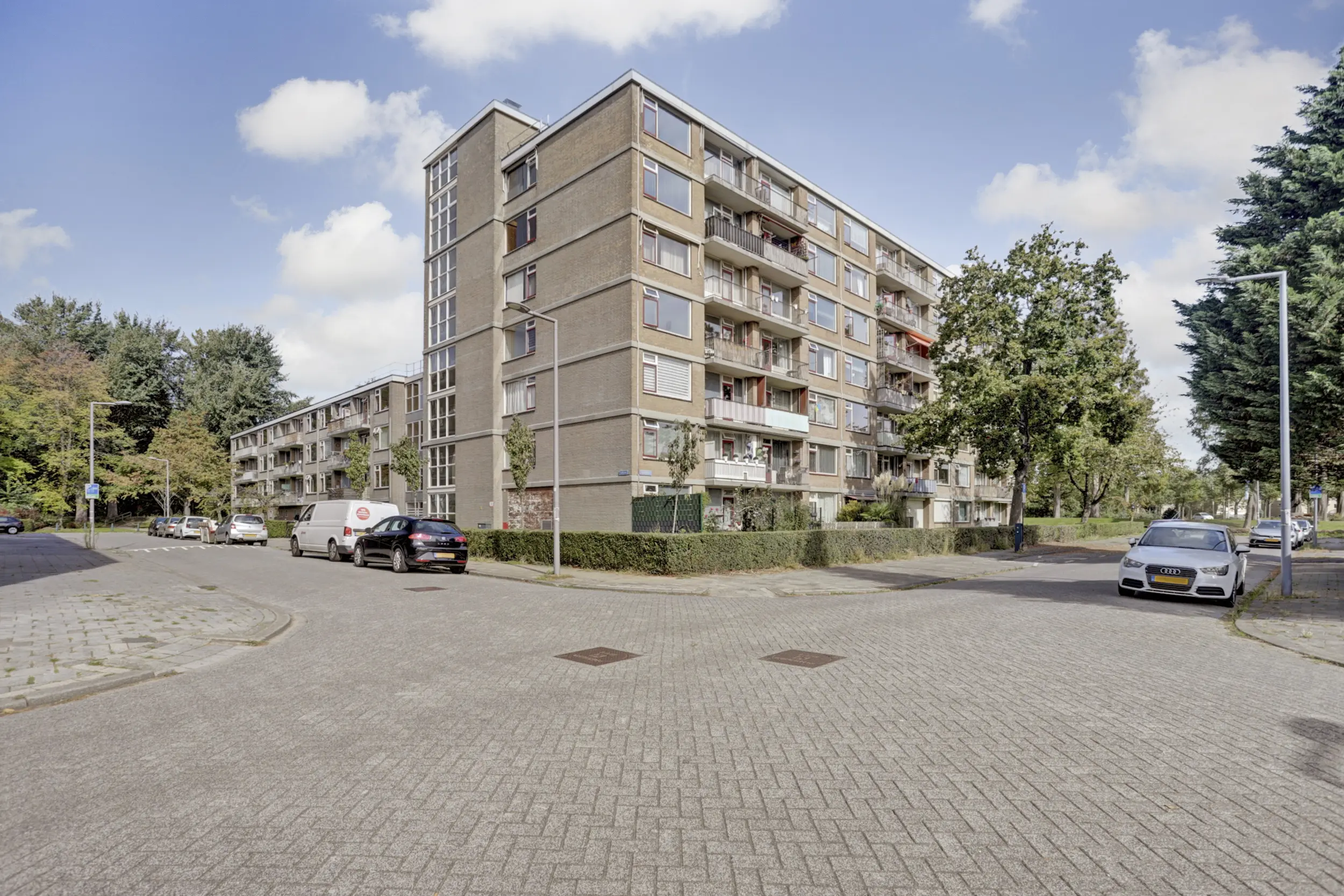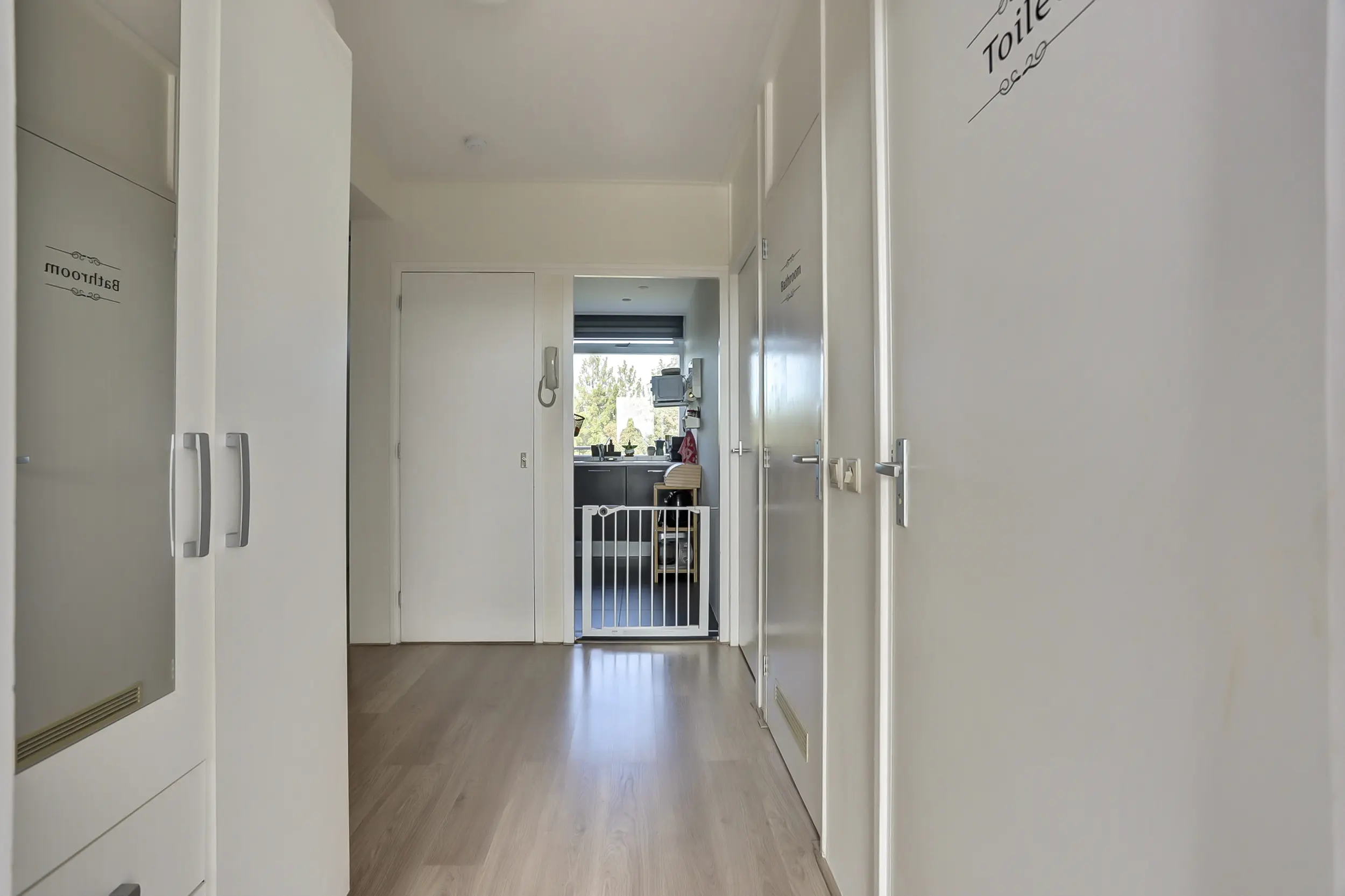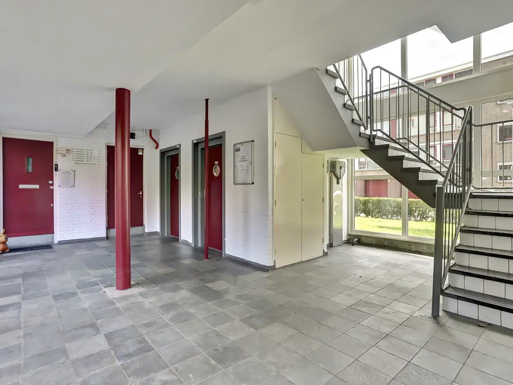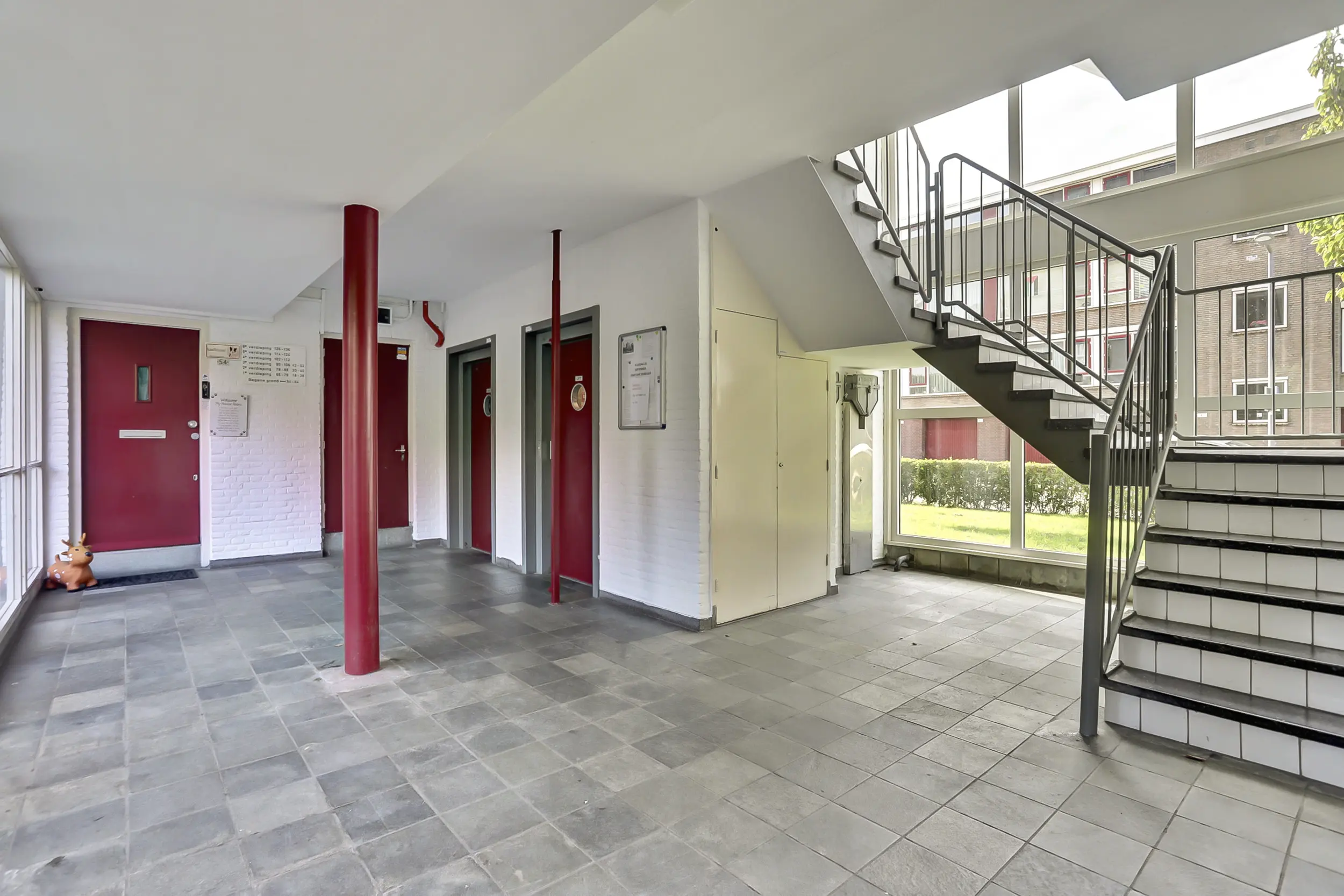 Je betreedt het keurig onderhouden complex via de afgesloten, centrale entree. De ruime hal met brievenbussen en bellentableau ademt direct een verzorgde sfeer uit. Je neemt één van de twee liften naar de zesde verdieping, waar dit fijne appartement op je wacht.