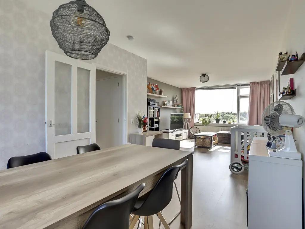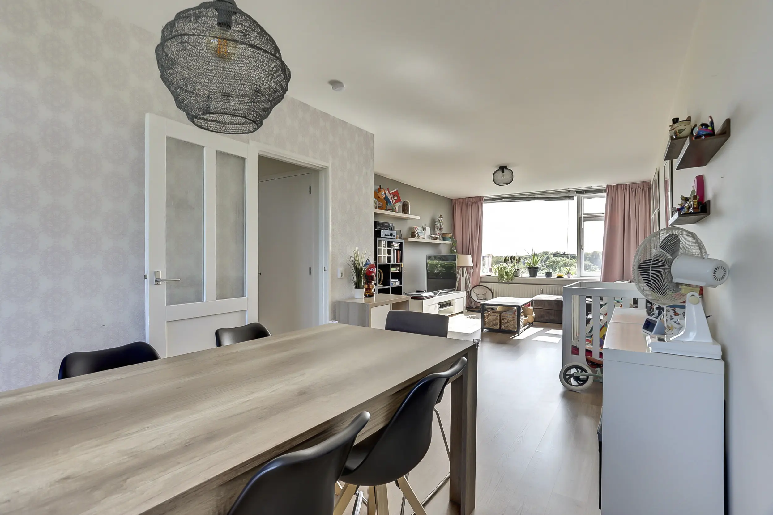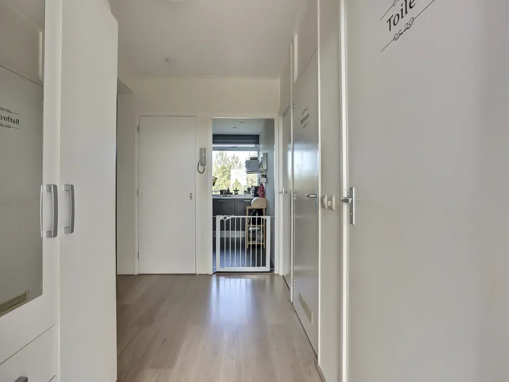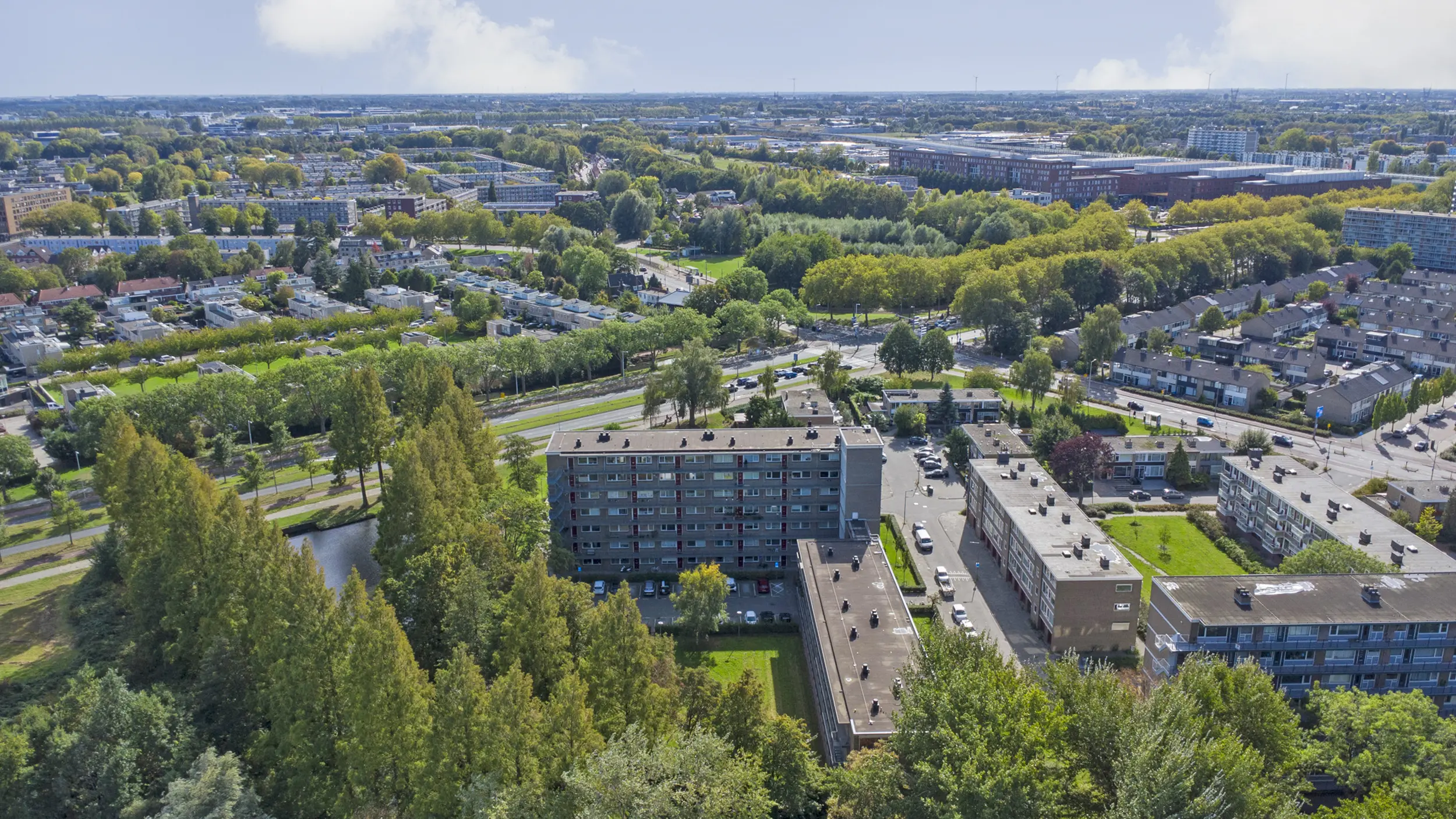 Je betreedt het keurig onderhouden complex via de afgesloten, centrale entree. De ruime hal met brievenbussen en bellentableau ademt direct een verzorgde sfeer uit. Je neemt één van de twee liften naar de zesde verdieping, waar dit fijne appartement op je wacht.