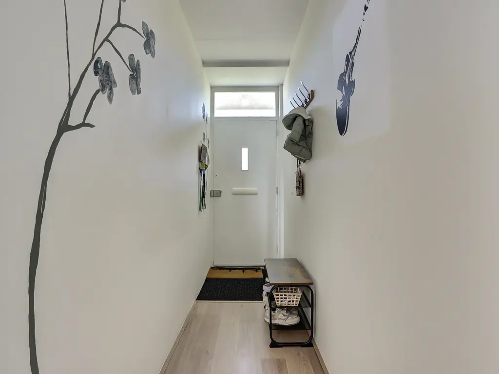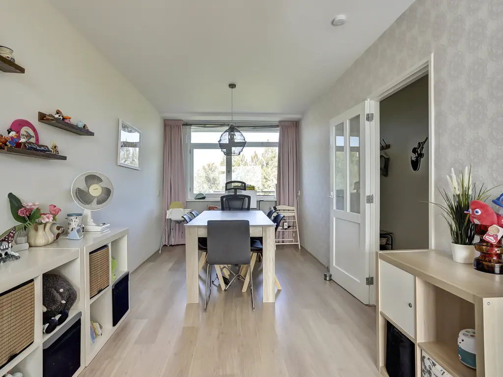 Zodra je de voordeur opent, kom je in een hal die direct toegang geeft tot de ruime en lichte woonkamer. De grote raampartijen zorgen voor een zee van daglicht, waardoor de ruimte nog groter aanvoelt dan hij al is. De gehele woonvleugel is, met uitzondering van de natte ruimtes, voorzien van een nette laminaatvloer die het geheel een moderne uitstraling geeft. Vanuit de woonkamer loop je naadloos door naar de eethoek, waar je met gemak een grote eettafel kwijt kunt voor gezellige etentjes.
