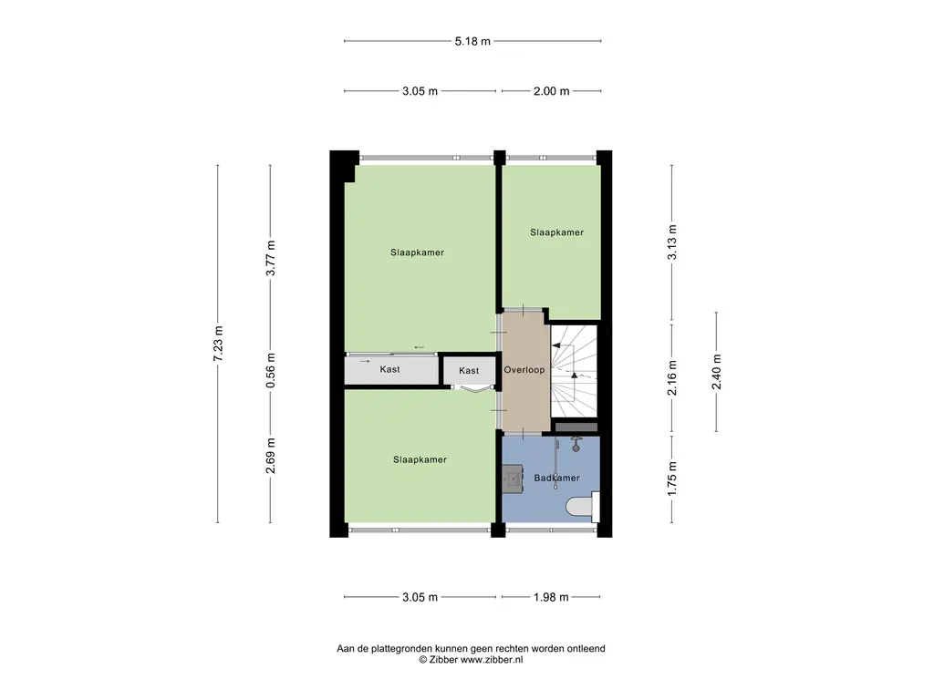 Via de open trap in de woonkamer gaan we naar de eerste verdieping. Daar vinden we drie slaapkamers van respectievelijk 12, 8 en 6 m². De ouderslaapkamer aan de achterzijdezijde heeft een grote inbouwkast. De tweede slaapkamer aan de voorzijde is ook voorzien van een inbouwkast. De derde slaapkamer – aan de achterzijde – is perfect als kinder-, logeer- of werkkamer.