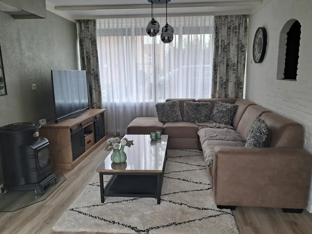 Vanuit de hal, met toilet, trapopgang en kelderkast, kom je in de L-vormige woonkamer met schuifpui. In de aangesloten woonkeuken vind je een keukeninrichting in hoekopstelling met diverse inbouwapparatuur (vernieuwd in 2024). Airco in de keuken aanwezig voor koeling en verwarming.