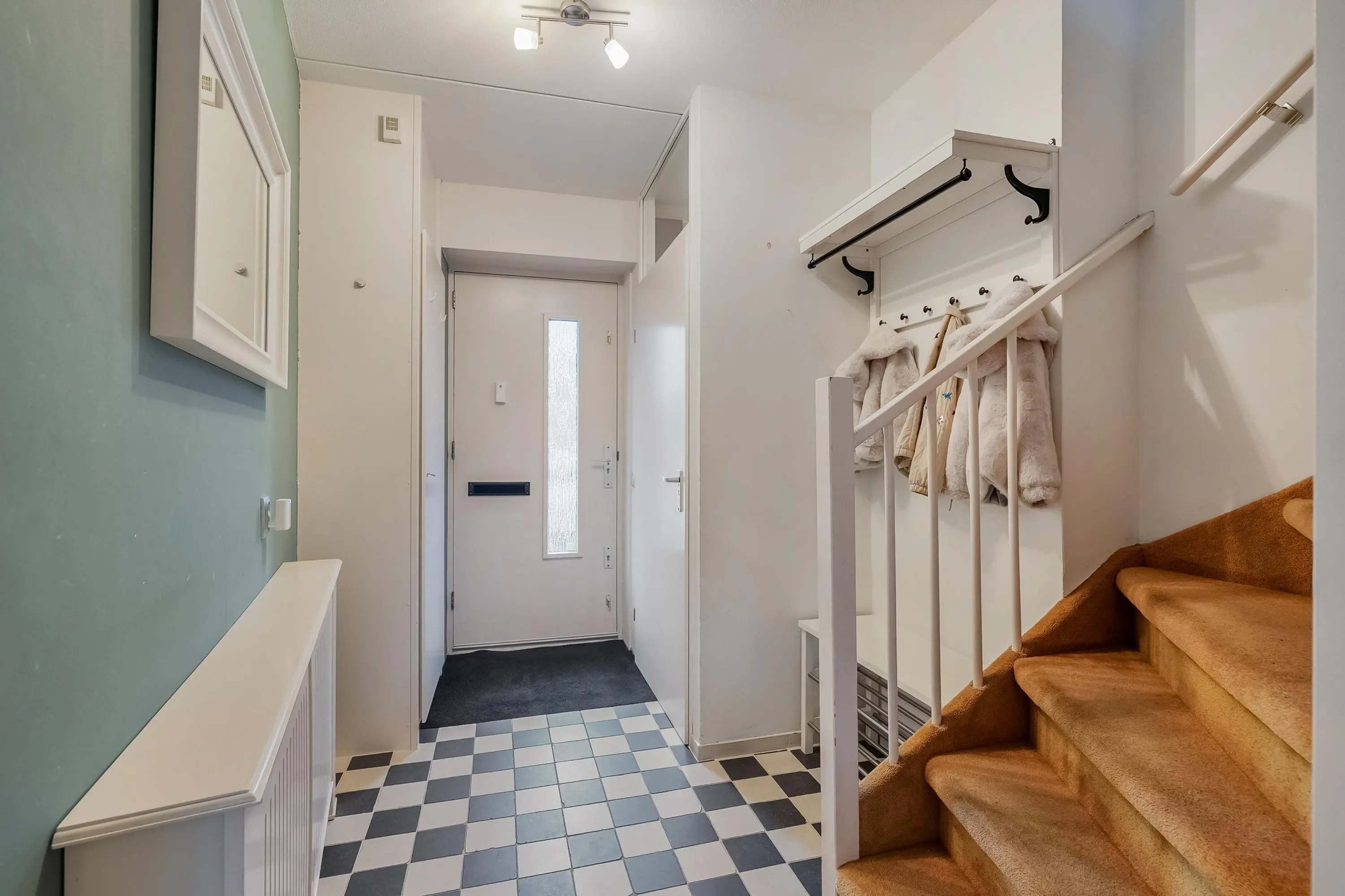 De voortuin is netjes aangelegd en beschikt over een handige buitenkraan. Het is echt leuk om een perenboom aan de voorzijde te hebben; die zorgt voor een gezellige en natuurlijke uitstraling. In de lente bloeit hij prachtig, en in de herfst plukt u uw eigen peren!