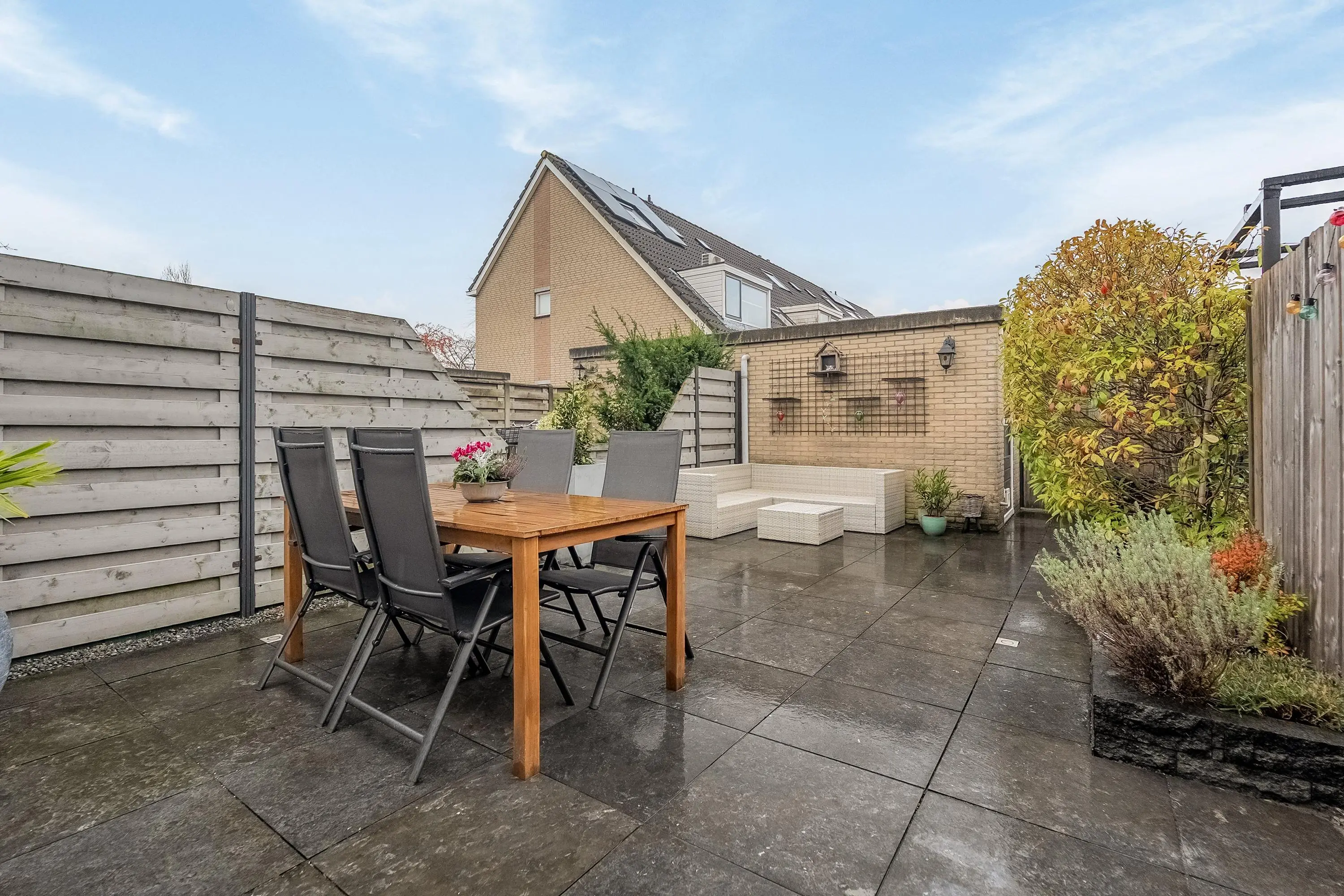 Deze moderne en goed onderhouden gezinswoning met energielabel A ligt in de rustige, kindvriendelijke wijk Dorpzicht en biedt alles wat u zoekt in een comfortabel en duurzaam thuis. Dankzij de 6 zonnepanelen woont u hier met uw gezin niet alleen stijlvol, maar ook energiezuinig. De uitgebouwde woonkamer is voorzien van vloerverwarming en grote raampartijen die zorgen voor een aangename, lichte leefruimte. Met de openslaande deuren open vloeien binnen en buiten letterlijk in elkaar over. Aan de voorzijde van de woning bevindt zich de open keuken, modern uitgevoerd en uitgerust met inbouwapparatuur om goed te kunnen koken. Op de eerste verdieping bevinden zich twee goed bemeten slaapkamers, allemaal voorzien van rolluiken, en een moderne badkamer met een eigentijdse uitstraling. De slaapkamer op de tweede verdieping is verrassend ruimtelijk dankzij de dakkapel en het dakraam, waardoor er veel lichtinval is en de ruimte optimaal wordt benut. De achtertuin op het zonnige zuidswesten is verzorgd aangelegd en biedt volop privacy, met een berging en achterom. Hier kun je heerlijk genieten van de middag- en avondzon. Kortom: een comfortabele, energiezuinige en instapklare gezinswoning waar aan alles is gedacht. De woning is klaar voor een nieuwe bewoner die hier met veel plezier de volgende hoofdstukken wil schrijven.