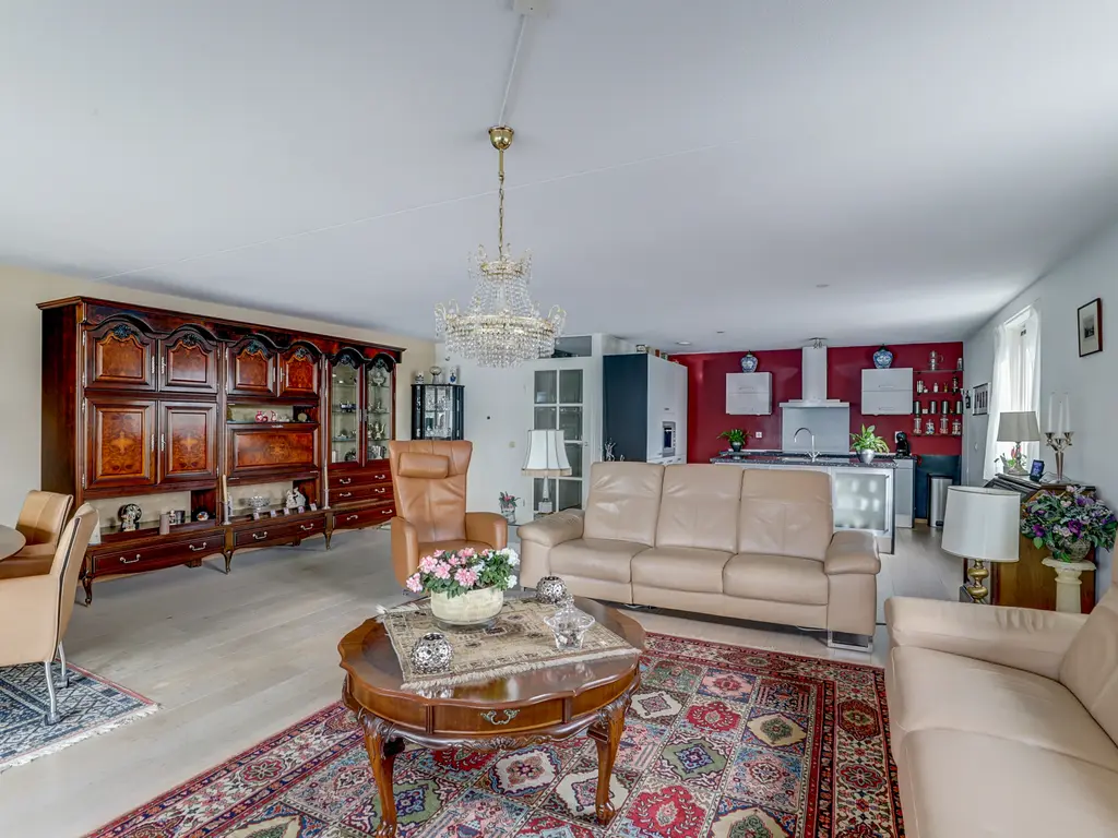 Terug in de woonkamer valt op hoe groot de ruimte is. Deze is op meerdere manieren in te delen: er is voldoende plek voor een grote eethoek en een gezellige zithoek om te lezen, tv te kijken of met vrienden een gezellige avond te beleven.