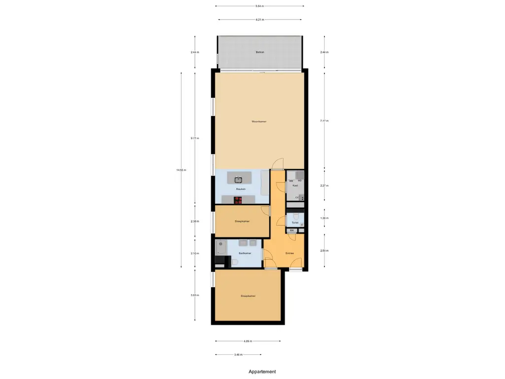 Zodra je de woonkamer binnenkomt, word je direct getrakteerd op een schitterend uitzicht over het water. Dankzij de riante achterpui én de grote zijramen is de living heerlijk licht en ruim. Via de schuifpui stap je zo het riante balkon van ruim 15 m² op – een perfecte plek om vrijwel de hele dag van de zon te genieten. Het balkon is zo groot dat je er eenvoudig een eettafel en een paar fijne stoelen kwijt kunt om te relaxen. Het uitzicht is prachtig en verveelt geen dag. Je kijkt uit over het water richting de Koedood en de polder – een perfecte combinatie tussen rust en een vleugje levendigheid van fietsers, wandelaars en enkele voorbijrijdende auto’s, ver genoeg weg om ze niet te horen.