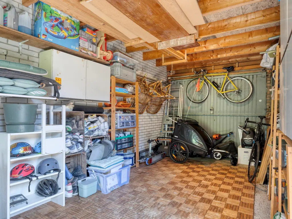 Naast de badkamer is een grote bergkast die zelfs achter de badkamer doorloopt. Via een vlizotrap is de bergvliering bereikbaar.