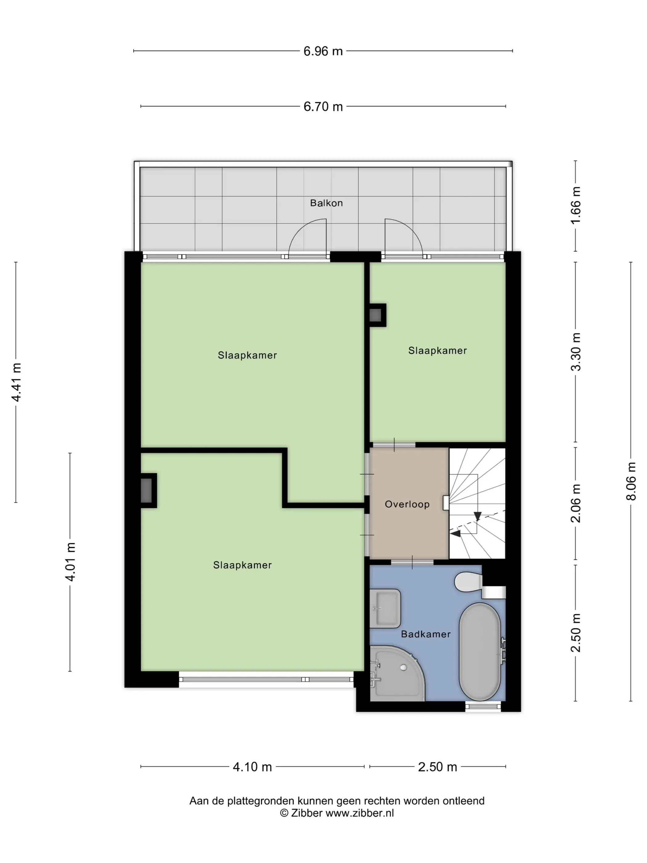 Overloop met toegang tot de badkamer, voorzien van ligbad, hoekdouche, wastafel en toilet. Grote lichte slaapkamer aan de voorzijde met een bijna even grote slaapkamer aan de achterzijde met toegang tot het balkon. De derde slaapkamer aan de achterzijde heeft eveneens een deur naar het brede balkon.