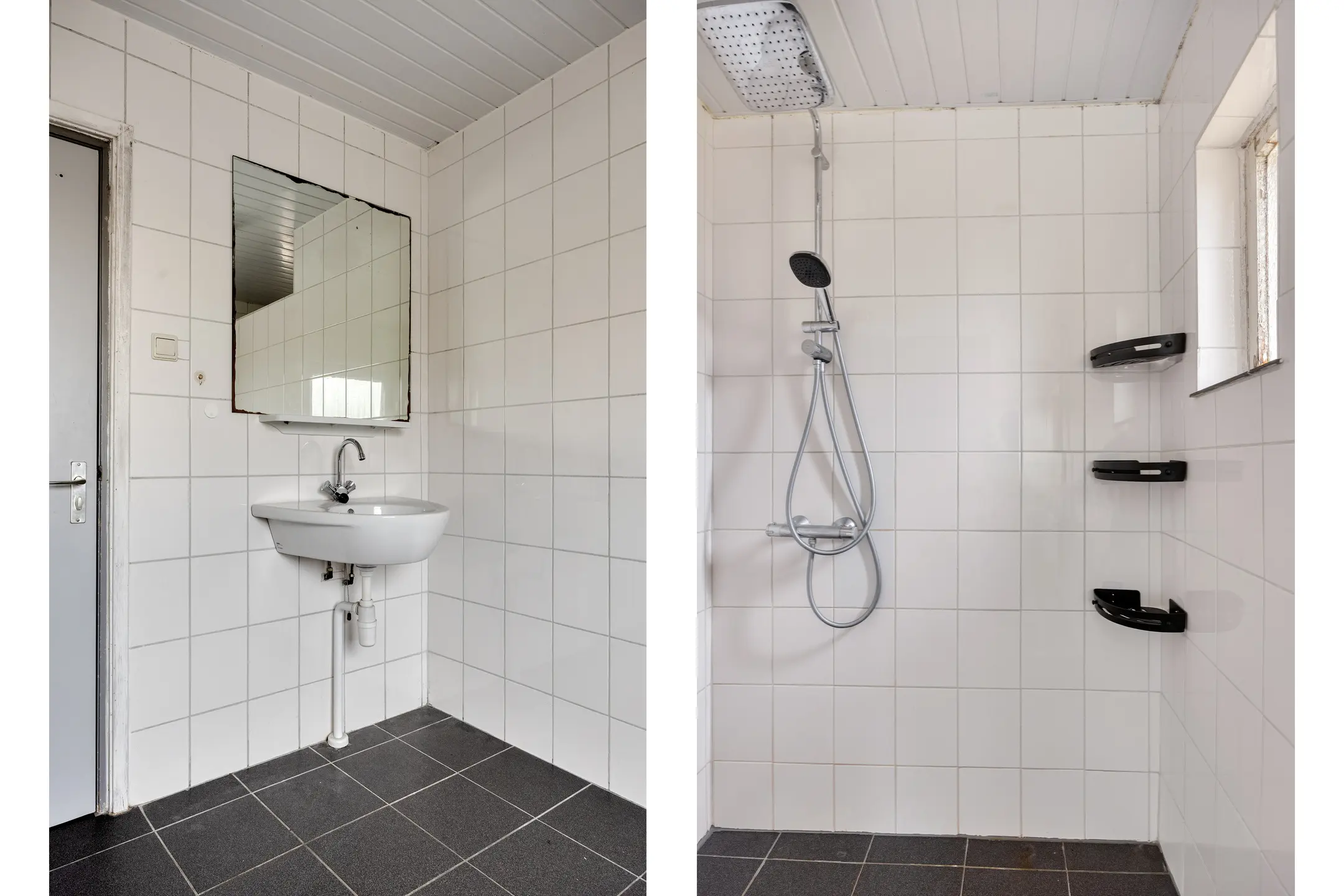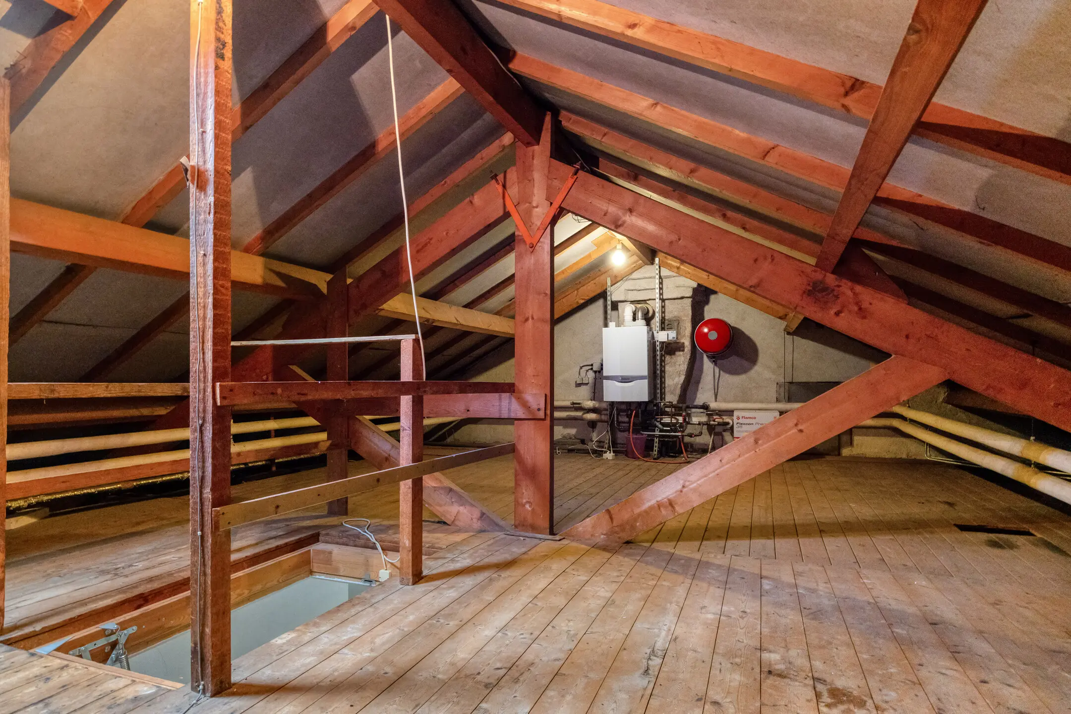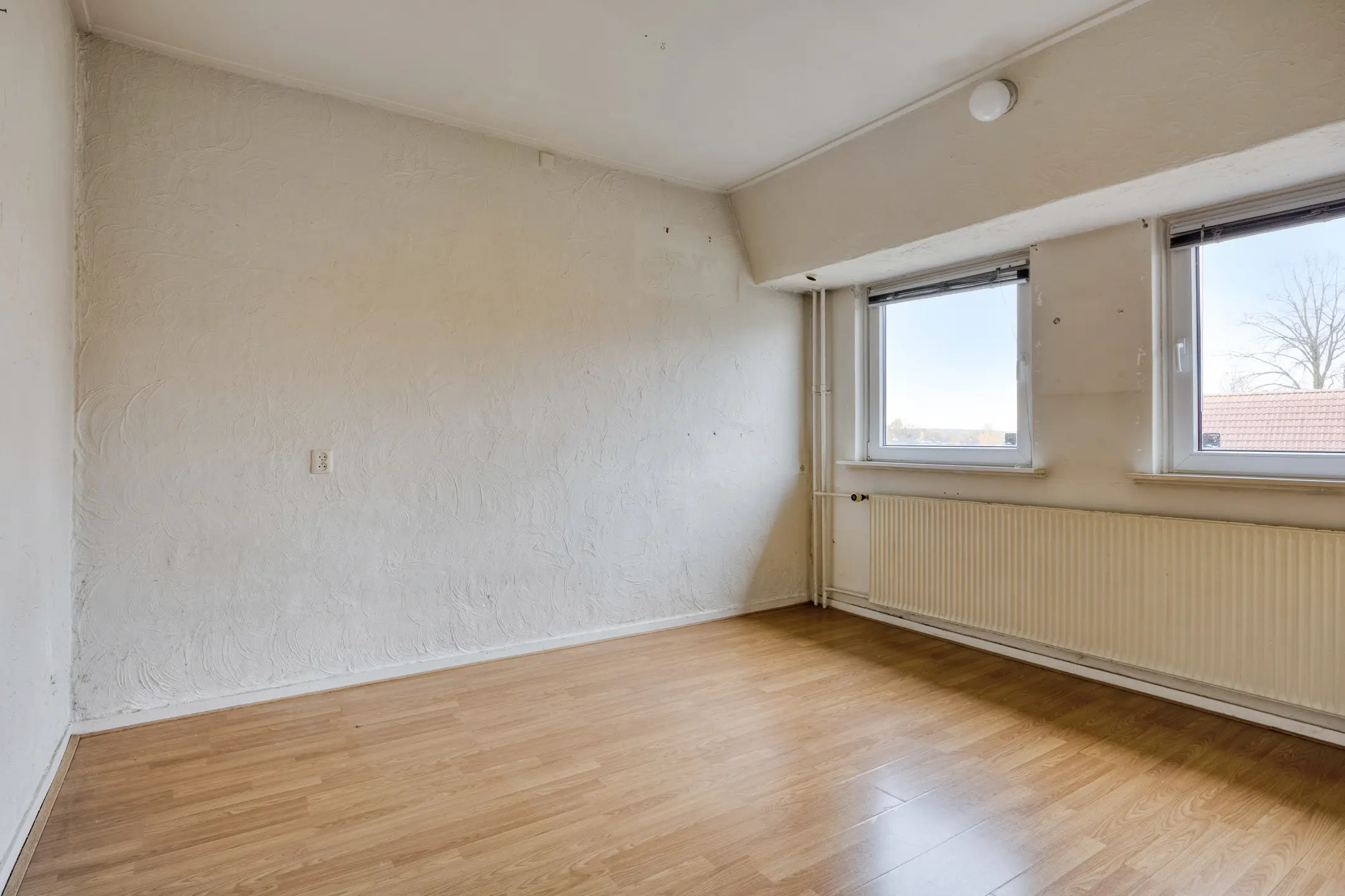 Op de eerste verdieping bevinden zich meerdere goed bemeten kamers, ideaal als slaapkamers, thuiskantoor of hobbyruimte. Door de rechte gevels is er veel praktische indelingsruimte beschikbaar. Licht en rust domineren op deze verdieping, wat zorgt voor een prettige sfeer. De zolder, bereikbaar met een vlizotrap, biedt extra opslagruimte en toekomstig potentieel. Voor wie verder wil uitbreiden of moderniseren, biedt deze verdieping voldoende mogelijkheden, uiteraard afhankelijk van de wensen en plannen van de koper.