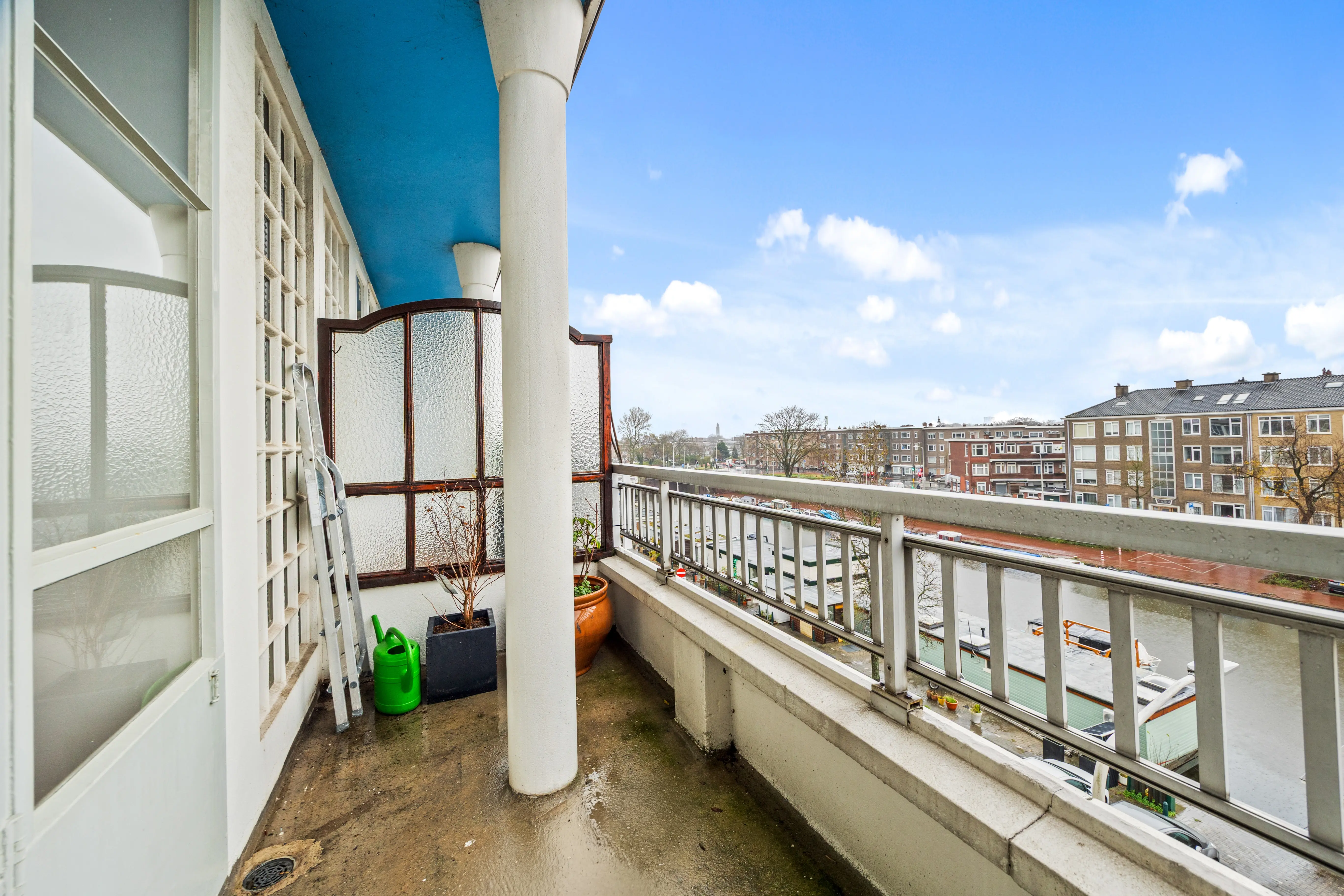 Located on the top floor, this spacious three- or four-room apartment features two balconies and a storage unit with unobstructed views of the waterway and The Hague skyline!