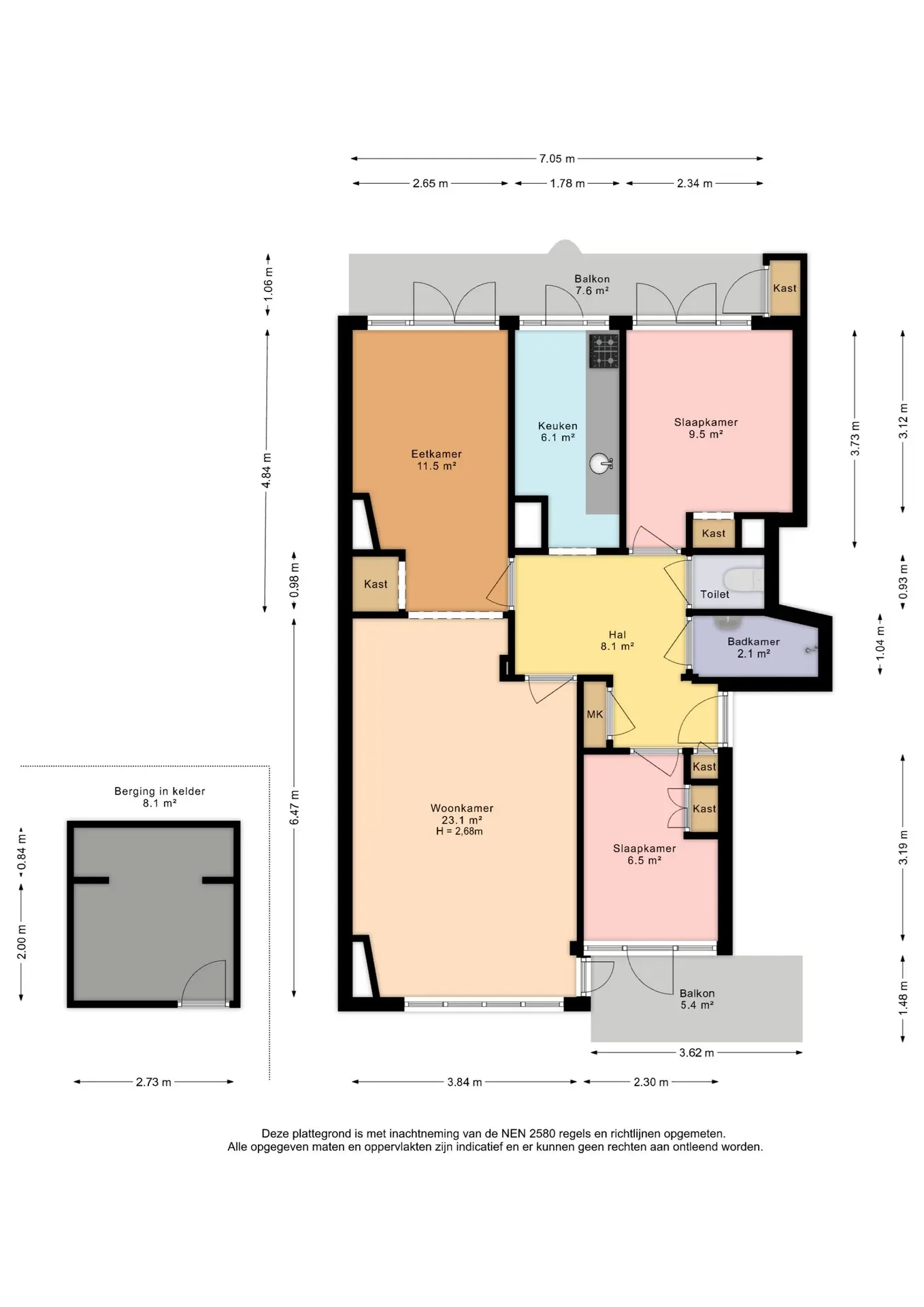 The living room ceiling height is 2.68 meters.