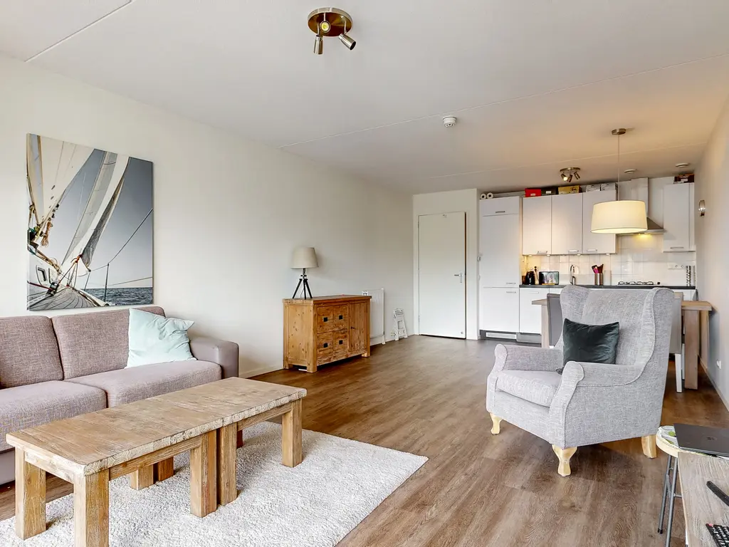 Het 2-kamer appartement verkeert in uitstekende staat en is stijlvol en compleet ingericht. Het beschikt over een ruime woonkamer met open keuken, een moderne badkamer, een slaapkamer, een separaat toilet en een praktische berging/wasruimte. Via de schuifdeuren bereikt u de tuin, vanwaar u een prachtig uitzicht heeft op de jachthaven.